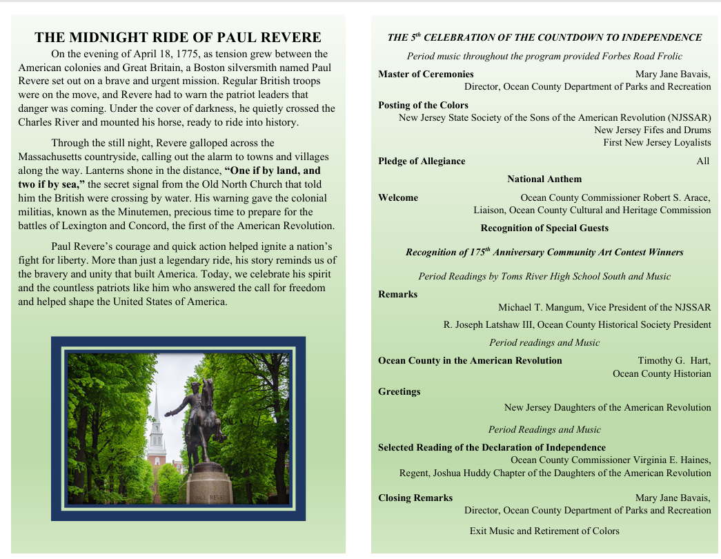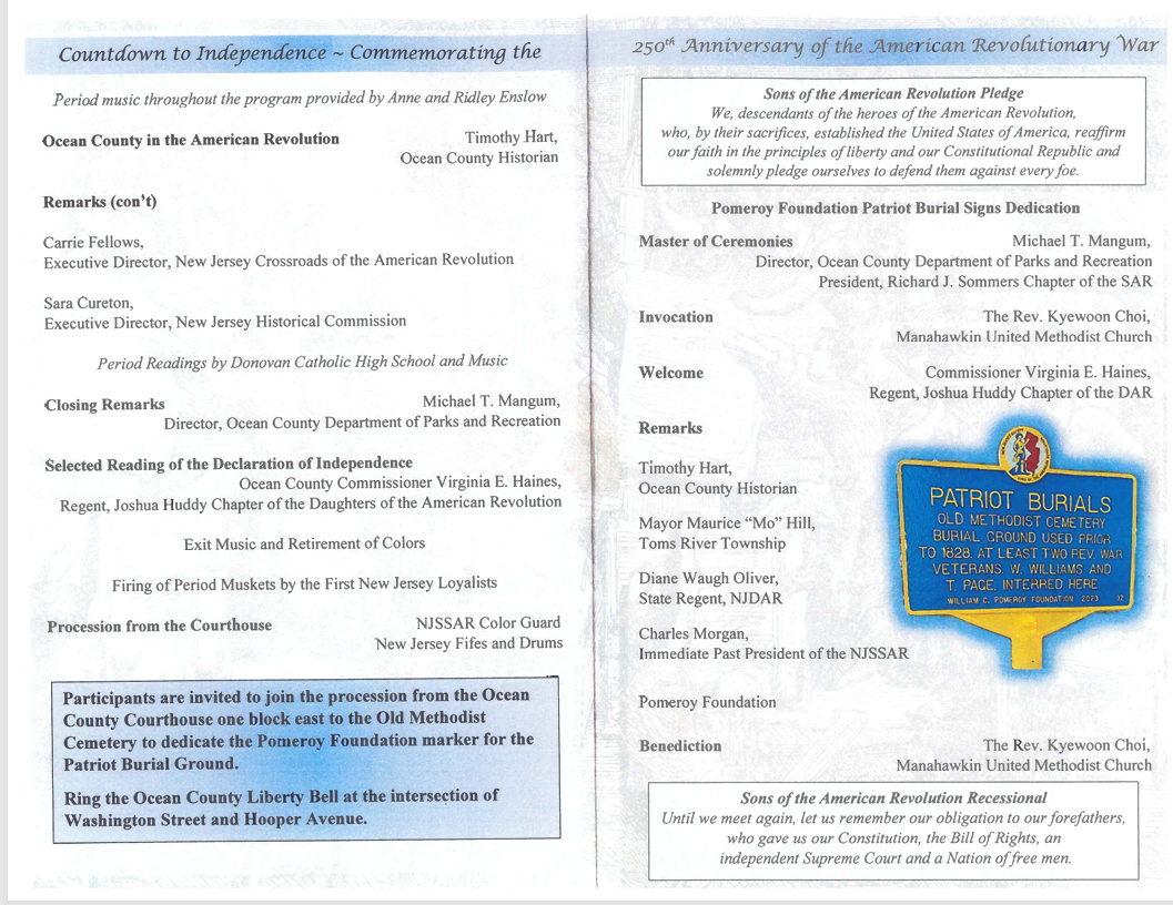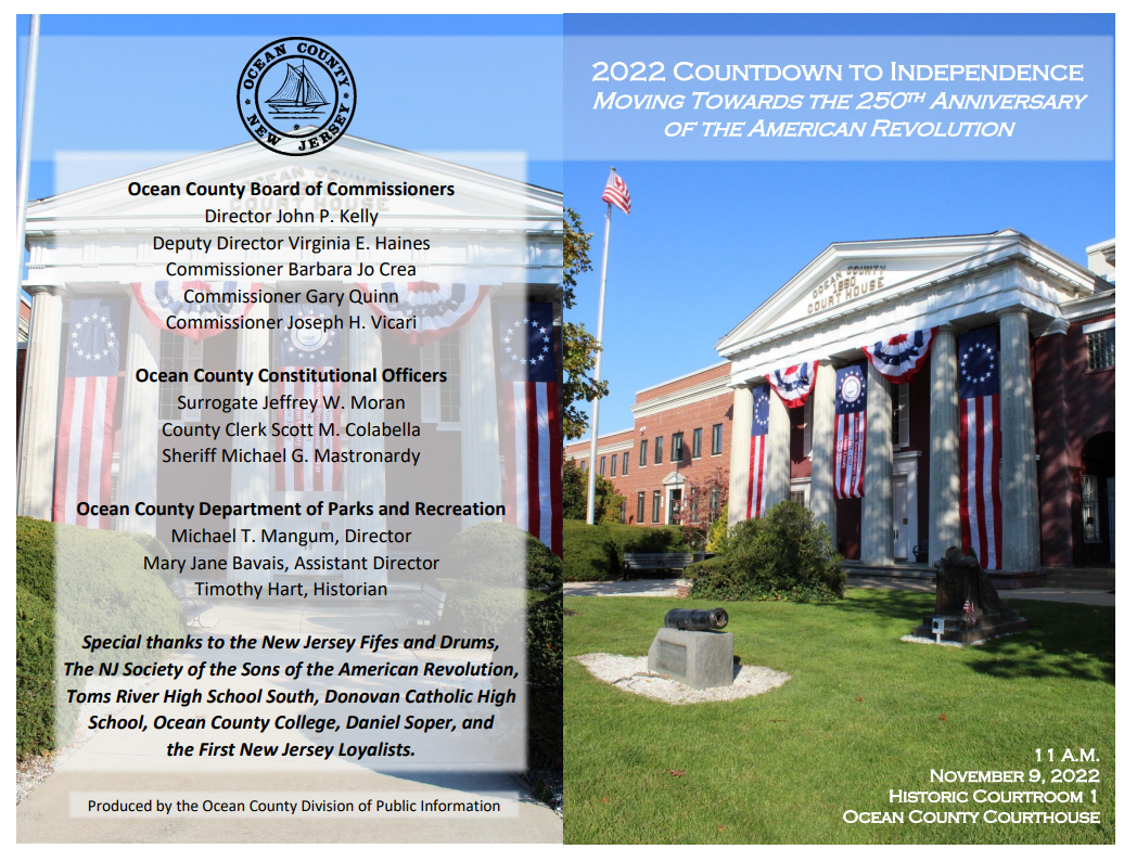 Each November since 2021, Ocean County Board of Commissioners hosts a formal commemoration of the American Revolution at historic Court Room #1.
