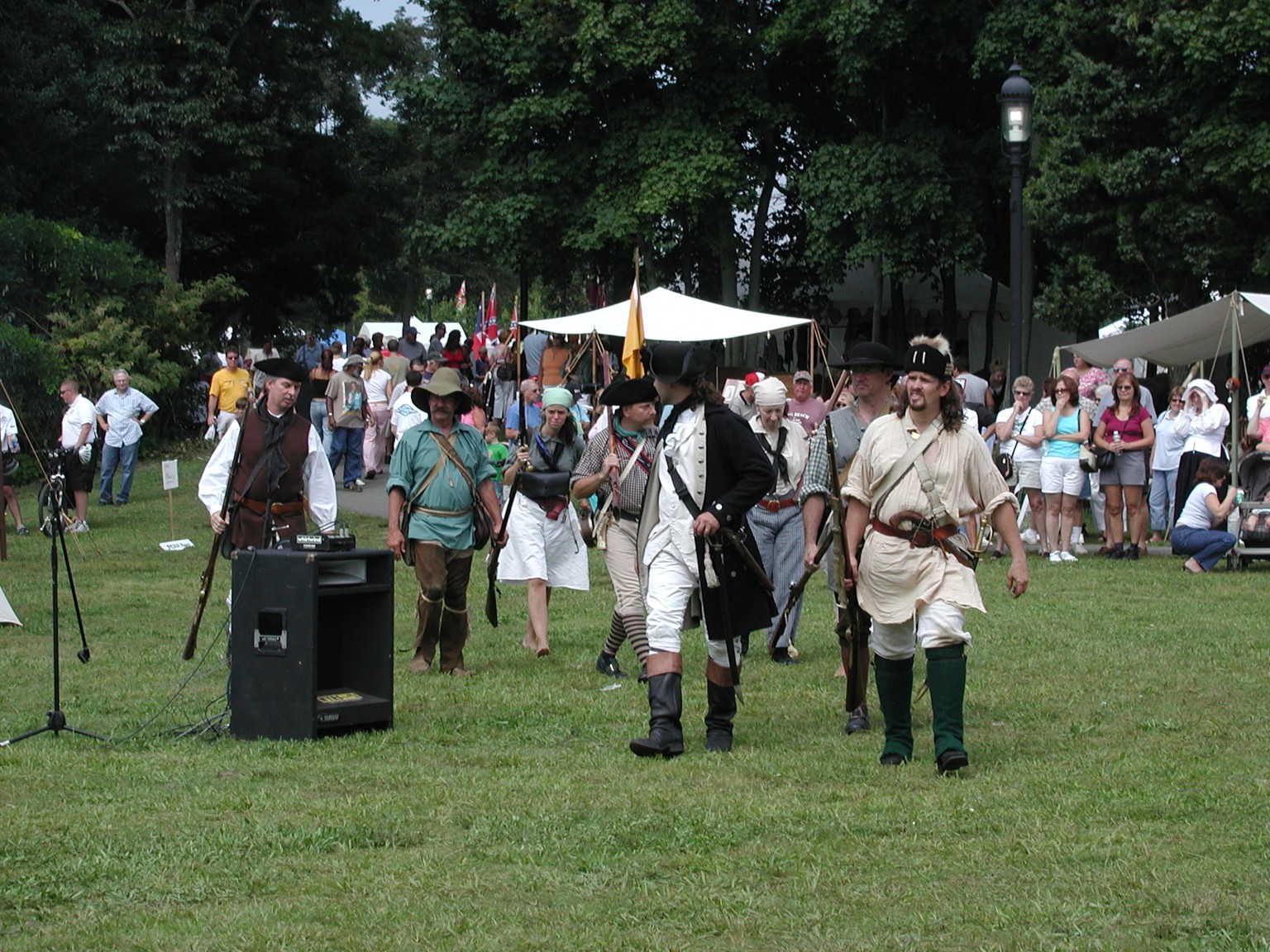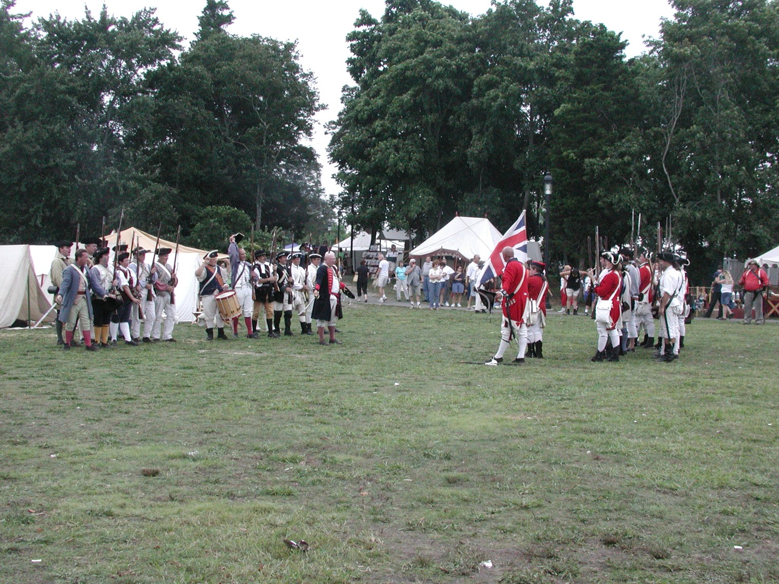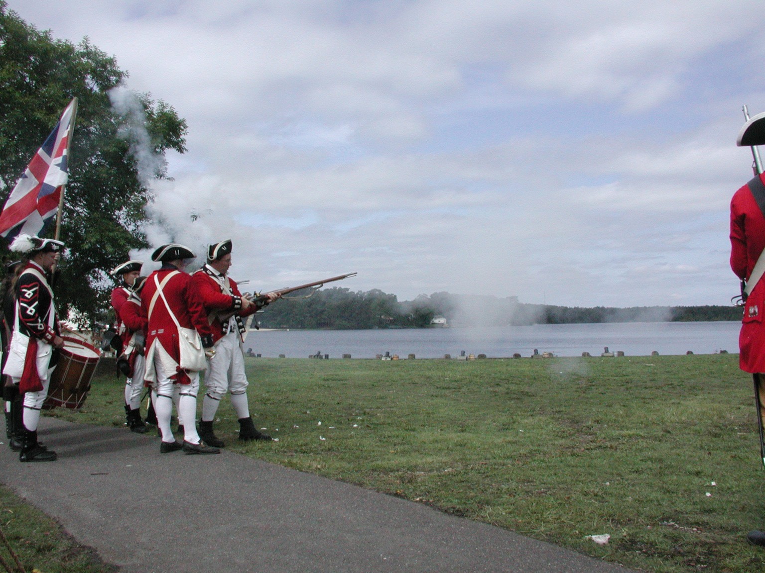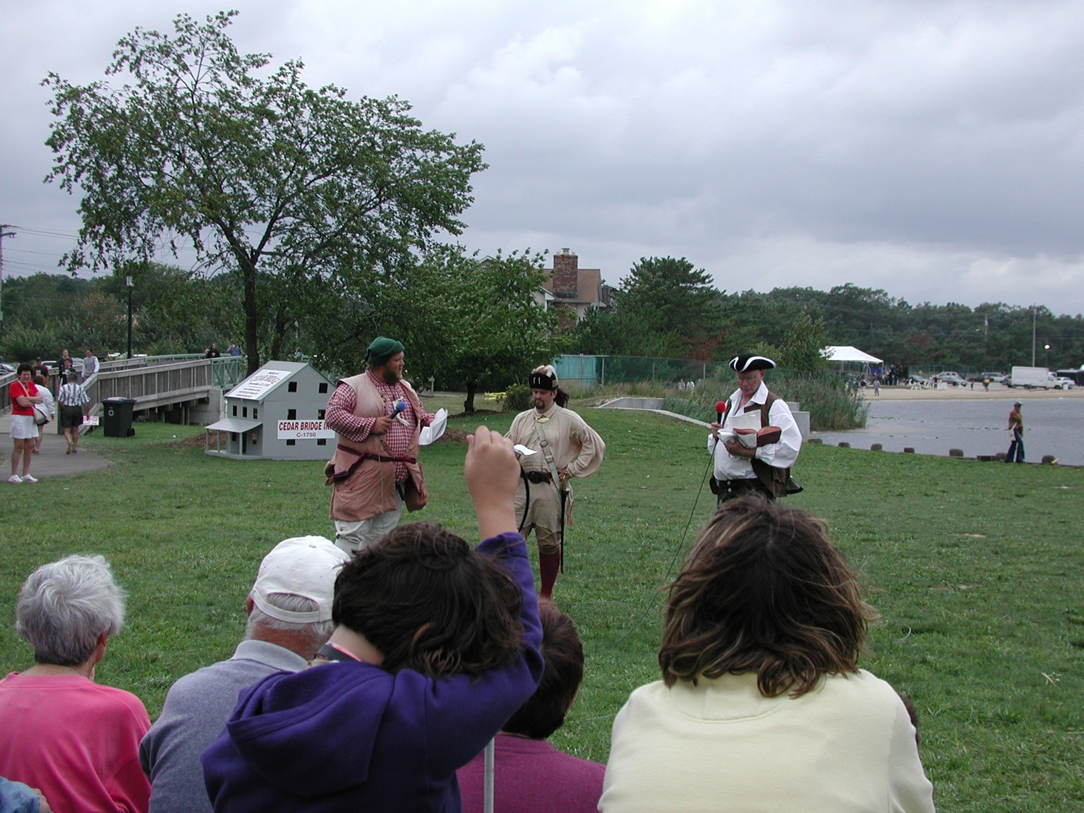Before any reenactments at Cedar Bridge Tavern, the battle of Cedar Bridge was demonstrated at Manahawkin Lake Park as part of the Stafford Township Historical Society Heritage Weekend from 2000 to 2006.