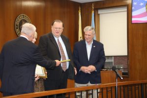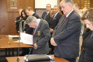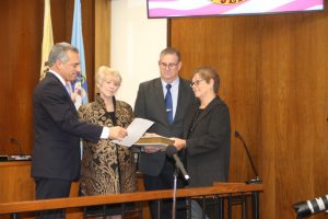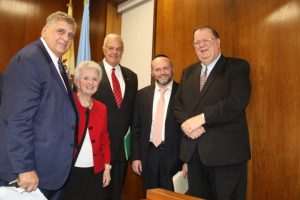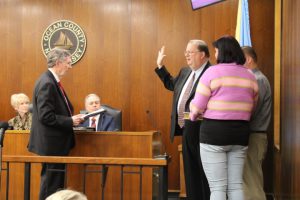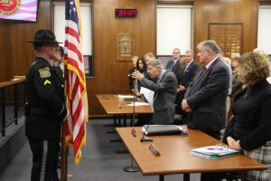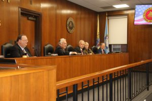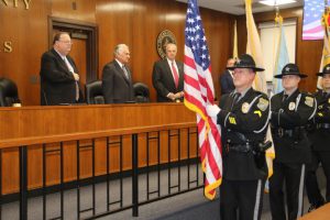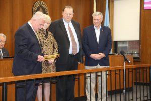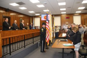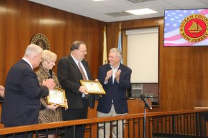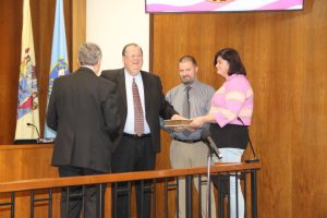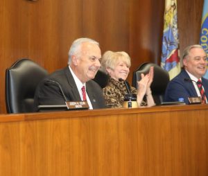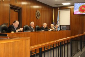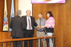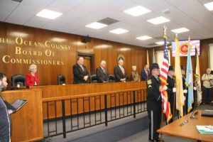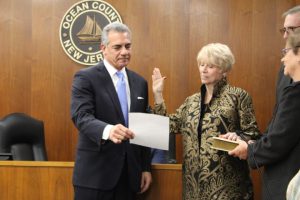 With family, friends, colleagues, staff, elected officials from the state and local levels in attendance, the Ocean County Board of Commissioners held its annual Organization Meeting for 2023 on Jan. 4 in the Ocean County Administration Building, Toms River. With his children Jimmy and Dawn Marie, by his side, holding the Bible, Ocean County Commissioner John P. Kelly was sworn to his 10th three year term on the Board. Ocean County Commissioner Virginia E. Haines was sworn to her third three-year term on the Board by former state Assemblyman Jack Ciattarelli and accompanied by her nephew Grant and his wife Darlene. Commissioner Joseph H. Vicari, the longest serving Commissioner in the state with more than four decades on the Board was named Director of the Board for 2023 and Commissioner Gary Quinn was named Deputy Director.