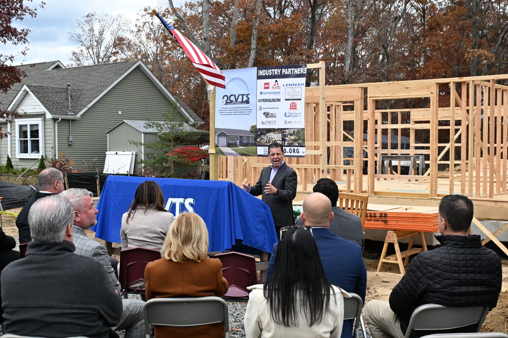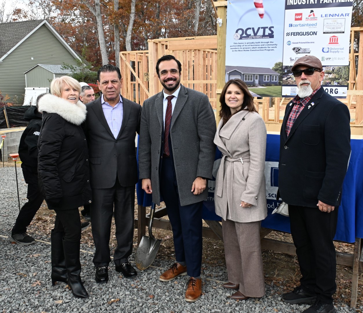 Members of the Ocean County Board of Commissioners joined Ocean County Vocational Technical School students and professionals, Berkeley Township officials, community partners and donors for the ceremonial start of a new home in Berkeley Township on Nov. 13. Built by students in the OCVTS New Home Construction program, this one-story, 1,800 square foot home with three bedrooms and two bathrooms provides hands-on experience in every phase of construction, from foundation to finishing, preparing students for careers in the growing skilled trades industry under the supervision of licensed instructors and industry professionals.