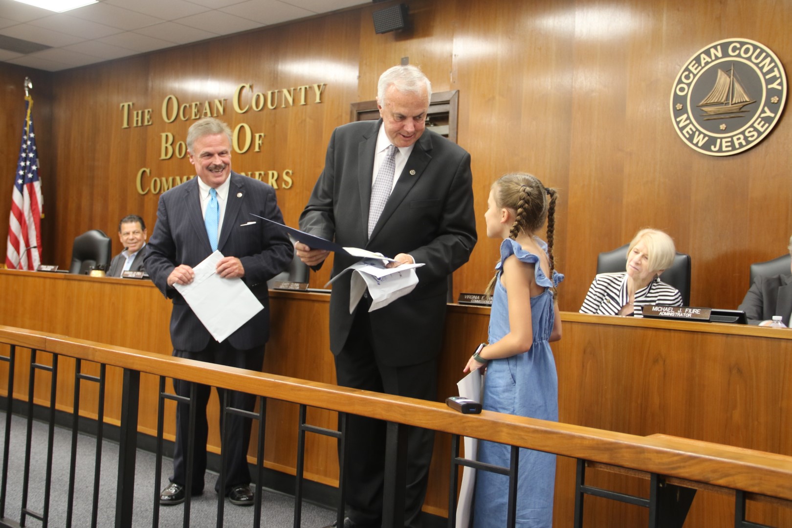 As part of National County Government month activities, students in Ocean County again created posters choosing what they consider the best qualities of a County that is home to more than 650,000 residents. The contest winners – all fourth graders – were recently honored by the Ocean County Board of Commissioners along with Ocean County Clerk Scott M. Colabella. The first place winner was Anna Buttacavoli of St. Joseph School, Toms River; second place winner, Lucas Placa, Long Beach Island Grade School; third place winner, Annabel Romero Rojas, Clifton Ave. School, Lakewood, and honorable mention, Zoe Vasquez, St. Dominic’s School, Brick. Ocean County Clerk Colabella, who leads the annual poster contest, noted that 58 fourth grade pupils entered the contest from 23 schools in Ocean County. The contest winners were selected by the public who cast their “likes” for their favorite poster on Facebook. “This poster contest is a great way to teach our young residents the many attributes Ocean County has to offer,” said Deputy Director of the Ocean County Board of Commissioners Gary Quinn, who is liaison to the Ocean County Clerk’s office. “The Ocean County Board of Commissioners extends its appreciation to all the students who participated in this annual event.”