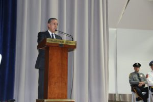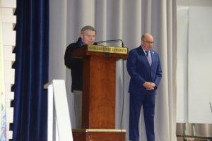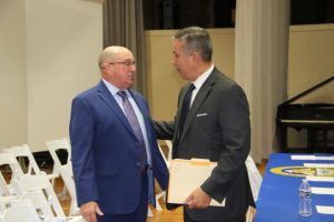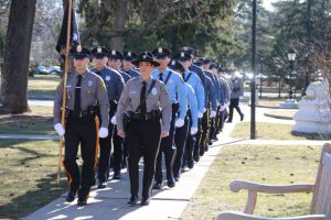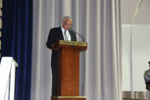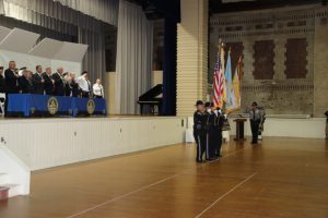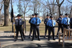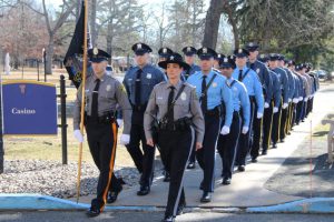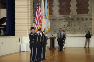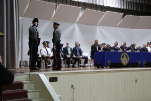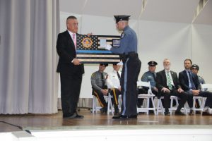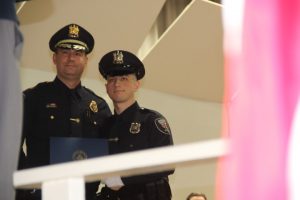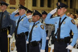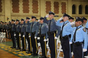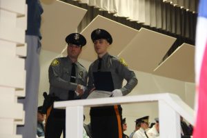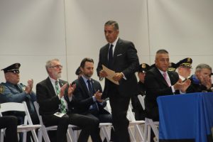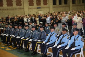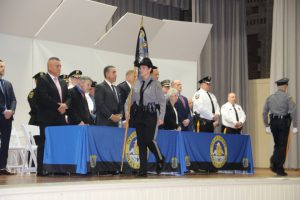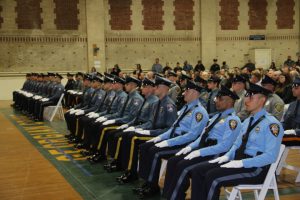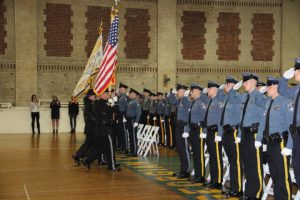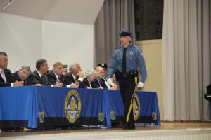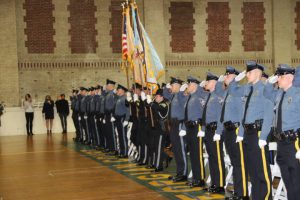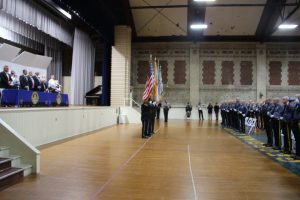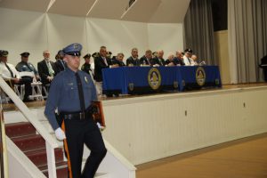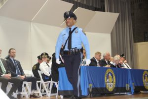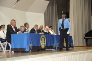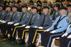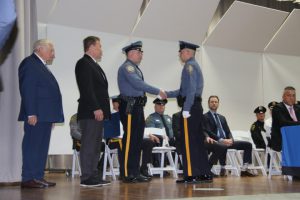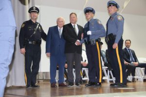 With friends and family members cheering them on, 38 new police officers that just completed months of training at the Ocean County Police Academy were feted during graduation ceremonies Feb. 14 at Georgian Court University. Graduates receiving awards during the ceremony were: Nicholas J. Almonte, Point Pleasant Beach Police Department, the James J. Tracey Leadership Award; Jean Verrier, Point Pleasant Beach Police Department, the PTC Merit Award Winner; Paul M. Mourad, Point Pleasant Police Department, High Academic Award; Matthew J. Schwartz, Seaside Park Police Department, the High Overall Award, the High Physical Fitness Award and the High Marksmanship Award, and Grayson A. Asprocolas, Michael A. Gallicchio, Paul M. Mourad, Matthew J. Schwartz and Jean Verrier, all receiving a Perfect Score in one or more of three qualifying firearms rounds. The graduates and their respective police departments are: Raymond J. Agosto, Nicholas J. Almonte, Anthony J. Babek, Jeffrey V. Poland, Eliot A. Ramos, Jr., Luke W. Ray, II, Michael C. Stilwell, Ronald G. Velardi, III, Jean Verrier, Cory R. Wilson and Umberto P. Zambard, all Point Pleasant Beach Police Department; Grayson A. Asprocolas and Raymond G. Zuhowski, Toms River Police Department; Dylan T. Bartky, Corri P. Feazell, James J. Hans, III, Vincent J. Servis, Dillan K. Simeon and Kevin Zilenas, all Seaside Heights Police Department. Also, Robert A. Biele, II, Long Beach Township Police Department; Carly G. Bouman, New Providence Police Department; John R. Chipak and Justin P. Tuzzolino, Bay Head Police Department; Anthony W. Clayton, Vincent J. Mutschler and Matthew J. Schwartz, Seaside Park Police Department; Bernard L. Comey and Dale E. Valle, Keansburg Police Department; Robert T. Cooper and Joseph G. Gioia, Mantoloking Police Department; Michael A. Gallicchio and Collin J. Robertazzi, Berkeley Township Police Department; Giulianna C. Iona, Pitman Police Department; Christopher M. Johnson, Jose L. Rivera and Richard A. Uriarte, Jr., Lakewood Police Department; John R. Labbate, Lacey Police Department, and Paul M Mourad, West Wildwood Police Department.