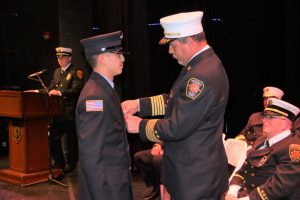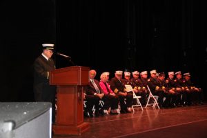 Ocean County recognized 91 new firefighters at a graduation ceremony March 15. The firefighters were trained during challenging times in particular while restrictions were in place during the COVID 19 pandemic delaying any ceremonies highlighting the completion of their rigorous training at the Ocean County Training Center. The new firefighters were honored by a host of Ocean County officials including Deputy Director of the Ocean County Board of Commissioners Gary Quinn and Commissioner Barbara Jo Crea, fire company leaders from throughout the County along with loved ones. The graduates and their respective fire companies are: Anthony M. Aldrich, Cody A. Anderson, Aubrey Borden, Ethan R. Elliott, Ethan J. Kasper, Anthony Wandras, Bayville Volunteer Fire Company; Gabriella Biele, Beach Haven Volunteer Fire Company; Juan A. Alicia IV, Michael R. Diehl, Ryan C. Everitt, Michael D. Friedman, Edmond A. Jonin, Kevin W. Kidney, Jr., Bryan Mulholland, Kyle Mulholland, Pine Beach Volunteer Fire Company; Michael Ayers, Jr., Mystic Island Volunteer Fire Company; John J. Bamburak, Noah R. Colino, Vincent DeSalvo, Nikolas DeVoe, Gregory R. Guempel, Paul M. Serra, Seaside Heights Volunteer Fire Company; Aiden Belfiore, Brian C. Einselen, Jackson M. Robertson, Barnegat Light Volunteer Fire Company; Nathaniel D. Braun, Brandon Hawkins, Jose I. Martinez, Anthony L. Robinson, Jr., Thomas M. Topoleski, Barnegat Volunteer Fire Company; John J. Burns, Joseph T. Chester, Hunter B. Reyes, Tyler E. Volek, Pinewald Pioneer Volunteer Fire Company; James D. Cahill, Michael R. Filipponi, Steven D. Halford, Jacob McArthur, Eagleswood Volunteer Fire Company; Vincent M. Caprio, Dominic Petrosino, Dominick J. Poppe, Ridgeway Volunteer Fire Company; Jack Coleman, Gary D. Jamison, Whiting Volunteer Fire Company; Dominick Cucciniello, Lanoka Harbor Volunteer Fire Company; Brayden D. Curry, Nicholas A. DiMartino, Connor J. Mulligan, Toms River #2 Volunteer Fire Company; Delcan DeCoursey, Mike Schleifer, Pioneer Hose Volunteer Fire Company; Justin K. Dunn, Christopher Jackson, Christopher J. Maine, Rolando J. Olivarez, John R. Skinner, Marin J. Smith, Joseph Stendardi, William R. Van Bramer, Point Pleasant Boro Volunteer Fire Company; Nicholas J. Englebert VII, Jake T. McNellis, High Point Volunteer Fire Company; Ryan C. Faircloth, Matthew Higgins, Jr., West Tuckerton Volunteer Fire Company; Allanah C. Fischer, Aiden Ryan, Brenden T. Shackelton, Ship Bottom Volunteer Fire Company; Anthony C. Gerbavac, Jeremy Peter Reils, New Egypt Volunteer Fire Company; Justin Hannold, Parkertown Volunteer Fire Company; Hunter John Hawk, Richard C. Herrick, Bradley L. LaRose, Kayleigh A. Munt, Jordan Rainone, Waretown Volunteer Fire Company; Scott J. Hoebel, Manchester Volunteer Fire Company; Jay L. Laird III, Drew Douglas Robinson, Lakehurst Volunteer Fire Company; Christopher S. Logan, Michael C. Shannon, Island Heights Volunteer Fire Company; Daniel A. McLoughlin, Jefferson M. Wall, Point Pleasant Beach Volunteer Fire Company; Scott R. Meggitt, Surf City Volunteer Fire Company; Angel G. Mercado, Breton Woods Volunteer Fire Company; Charles Robert Mulloy IV, Seaside Park Volunteer Fire Company; Heather Nolze-Brescia, Beachwood Volunteer Fire Company; Parker L. Omslaer, Cassville Volunteer Fire Company; Branden Pelusio, Matthew Tancredi, Stafford Volunteer Fire Company; Shawn T. Philibin, Herbertsville Volunteer Fire Company; Cory J. van den Berg, Manitou Park Volunteer Fire Company; Brian M. Weil, Toms River #1 Volunteer Fire Company; Kevin M. Weir, Forked River Volunteer Fire Company.