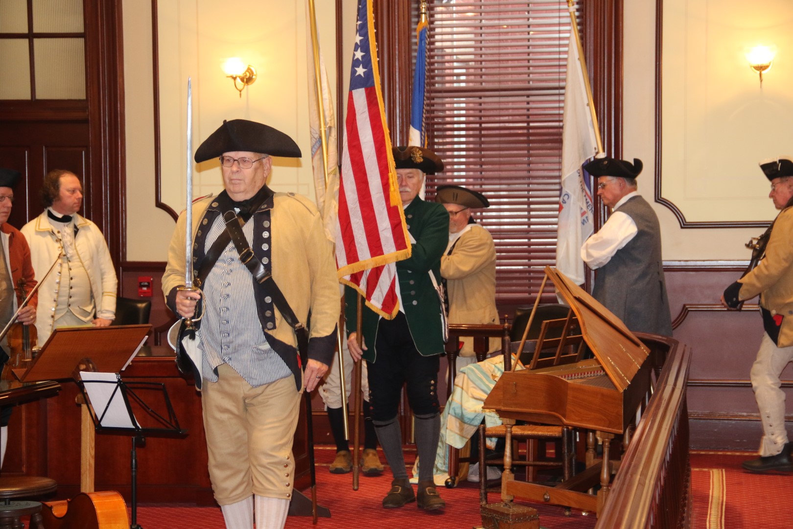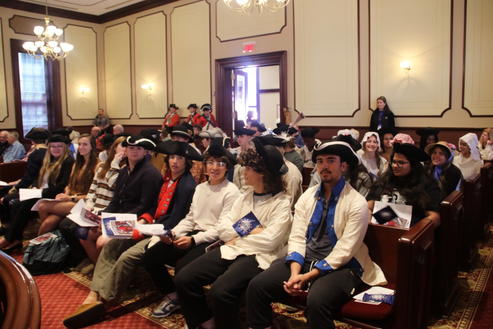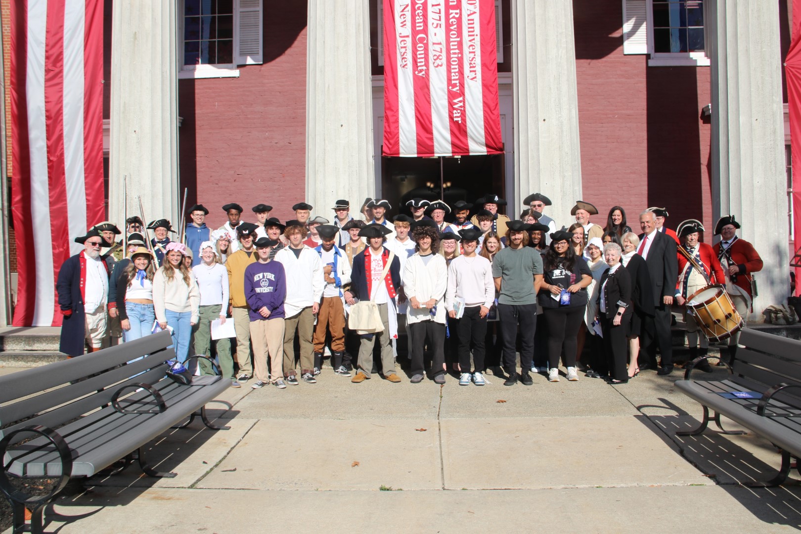 As the Nation continues its multi-year commemoration of the 250th anniversary of America, the Ocean County Board of Commissioners joined with the Ocean County Cultural and Heritage Commission and the Ocean County Parks and Recreation Department in Ocean County’s annual Countdown to Independence celebration. This year’s event, hosted on Nov. 20 in the Historic Court Room 1 of the Ocean County Courthouse in Toms River, highlighted the First Continental Congress, which first met in Philadelphia on Sept. 5, 1774. Ocean County Commissioner Virginia E. Haines, who is liaison to the Ocean County Cultural and Heritage Commission, and also serves as the Regent of Joshua Huddy National Society Daughters of the American Revolution was joined by the Director of the Ocean County Board of Commissioners Barbara Jo Crea, Deputy Director Gary Quinn and Commissioner Frank Sadeghi, as well as members of the New Jersey Society of Sons of the American Revolution, students from Toms River High School South and historical society members in recognizing the significance of the First Continental Congress in our nation’s history. The First Continental Congress was a deliberate assembly organized by American colonial governments to coordinate their resistance to British rule during the first two years of the American Revolution. Period music was provided throughout the program by Ministers of Apollo. In addition, the New Jersey Fifes and Drums and the First New Jersey Loyalists were in attendance.