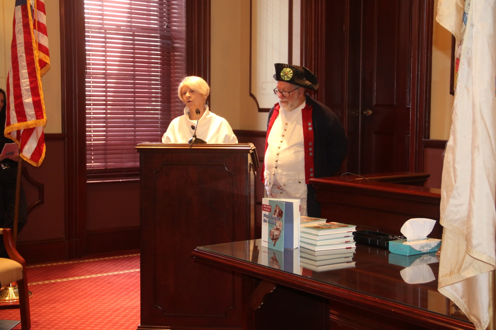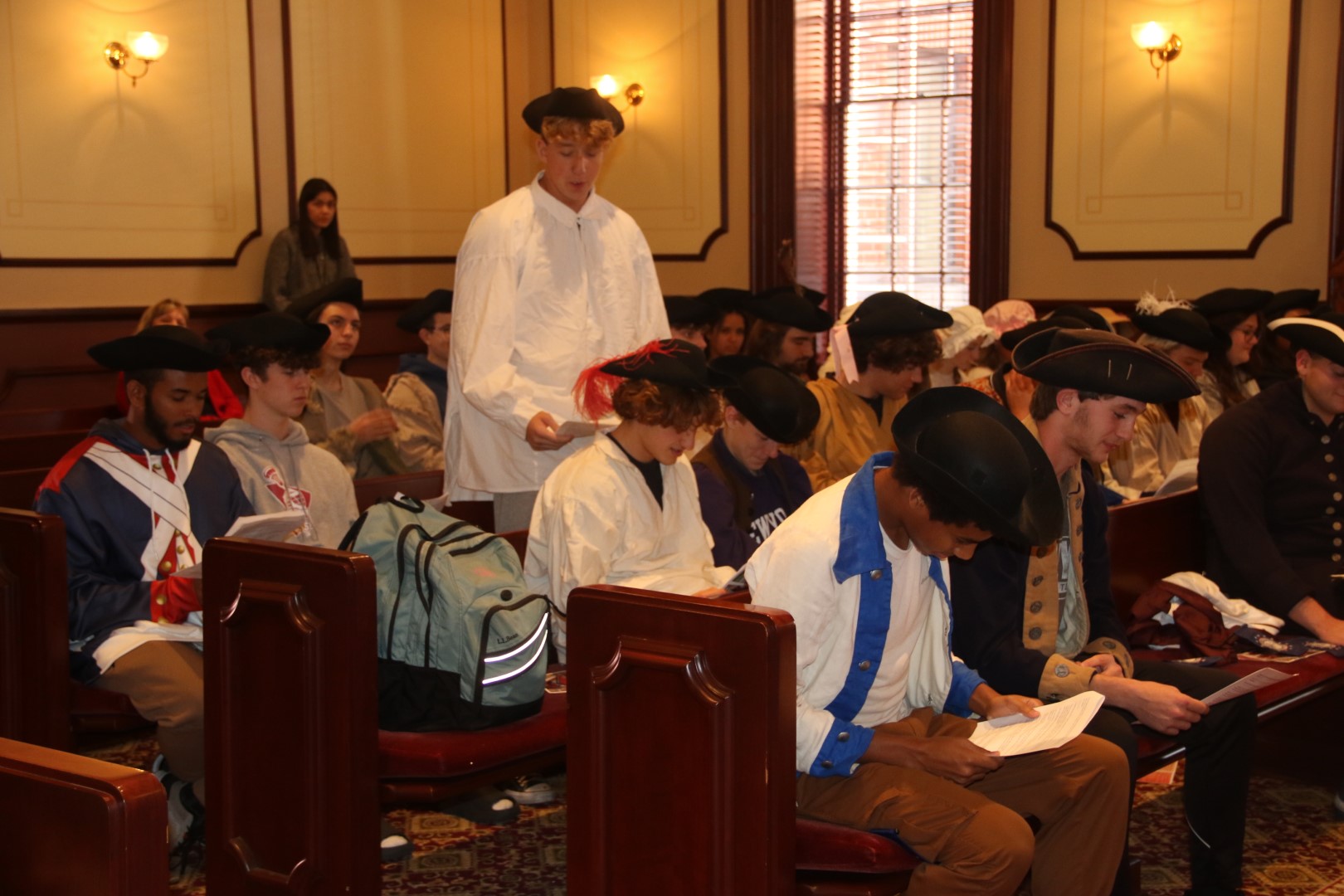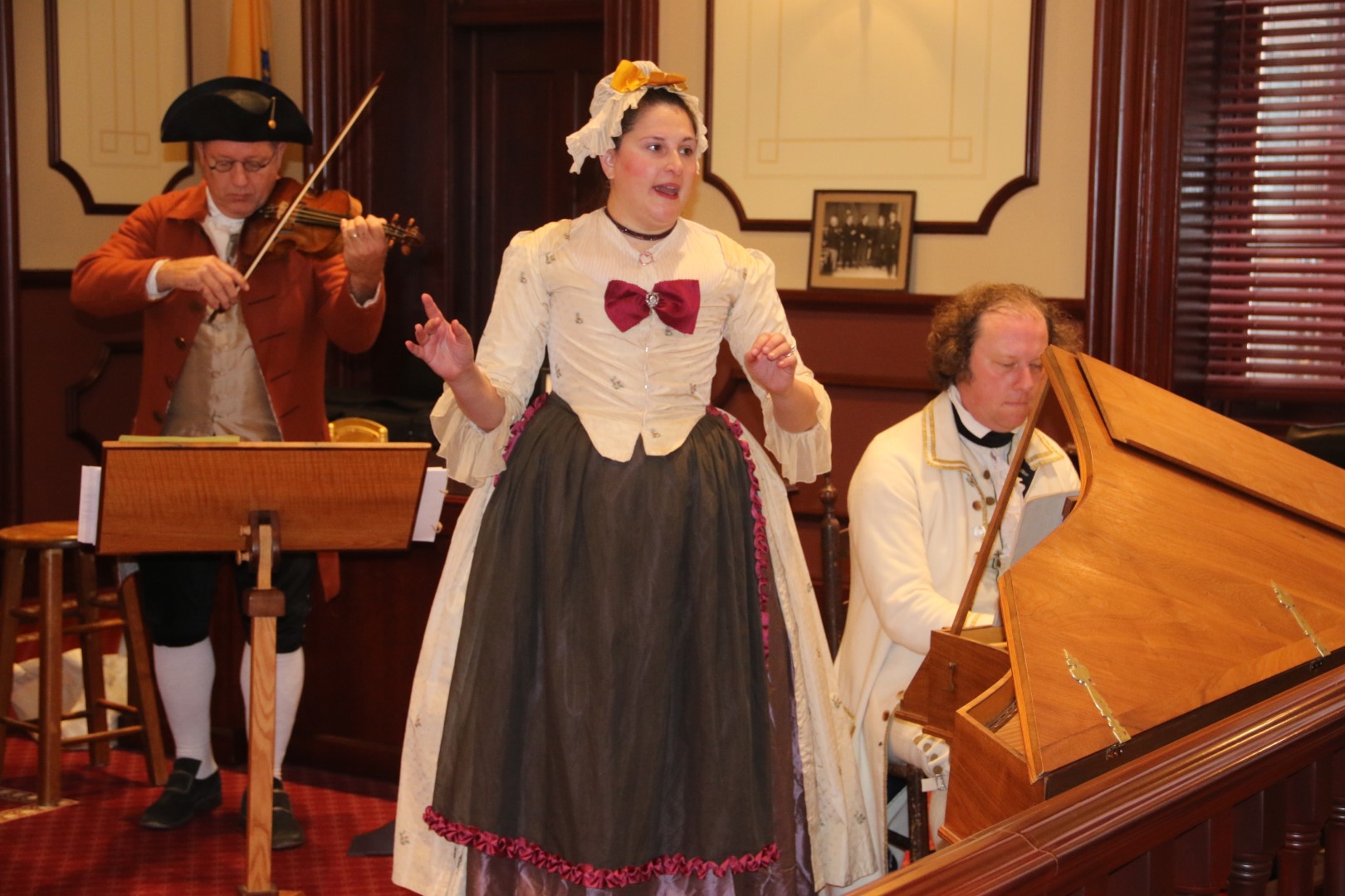 As the Nation continues its multi-year commemoration of the 250th anniversary of America, the Ocean County Board of Commissioners joined with the Ocean County Cultural and Heritage Commission and the Ocean County Parks and Recreation Department in Ocean County’s annual Countdown to Independence celebration. This year’s event, hosted on Nov. 20 in the Historic Court Room 1 of the Ocean County Courthouse in Toms River, highlighted the First Continental Congress, which first met in Philadelphia on Sept. 5, 1774. Ocean County Commissioner Virginia E. Haines, who is liaison to the Ocean County Cultural and Heritage Commission, and also serves as the Regent of Joshua Huddy National Society Daughters of the American Revolution was joined by the Director of the Ocean County Board of Commissioners Barbara Jo Crea, Deputy Director Gary Quinn and Commissioner Frank Sadeghi, as well as members of the New Jersey Society of Sons of the American Revolution, students from Toms River High School South and historical society members in recognizing the significance of the First Continental Congress in our nation’s history. The First Continental Congress was a deliberate assembly organized by American colonial governments to coordinate their resistance to British rule during the first two years of the American Revolution. Period music was provided throughout the program by Ministers of Apollo. In addition, the New Jersey Fifes and Drums and the First New Jersey Loyalists were in attendance.