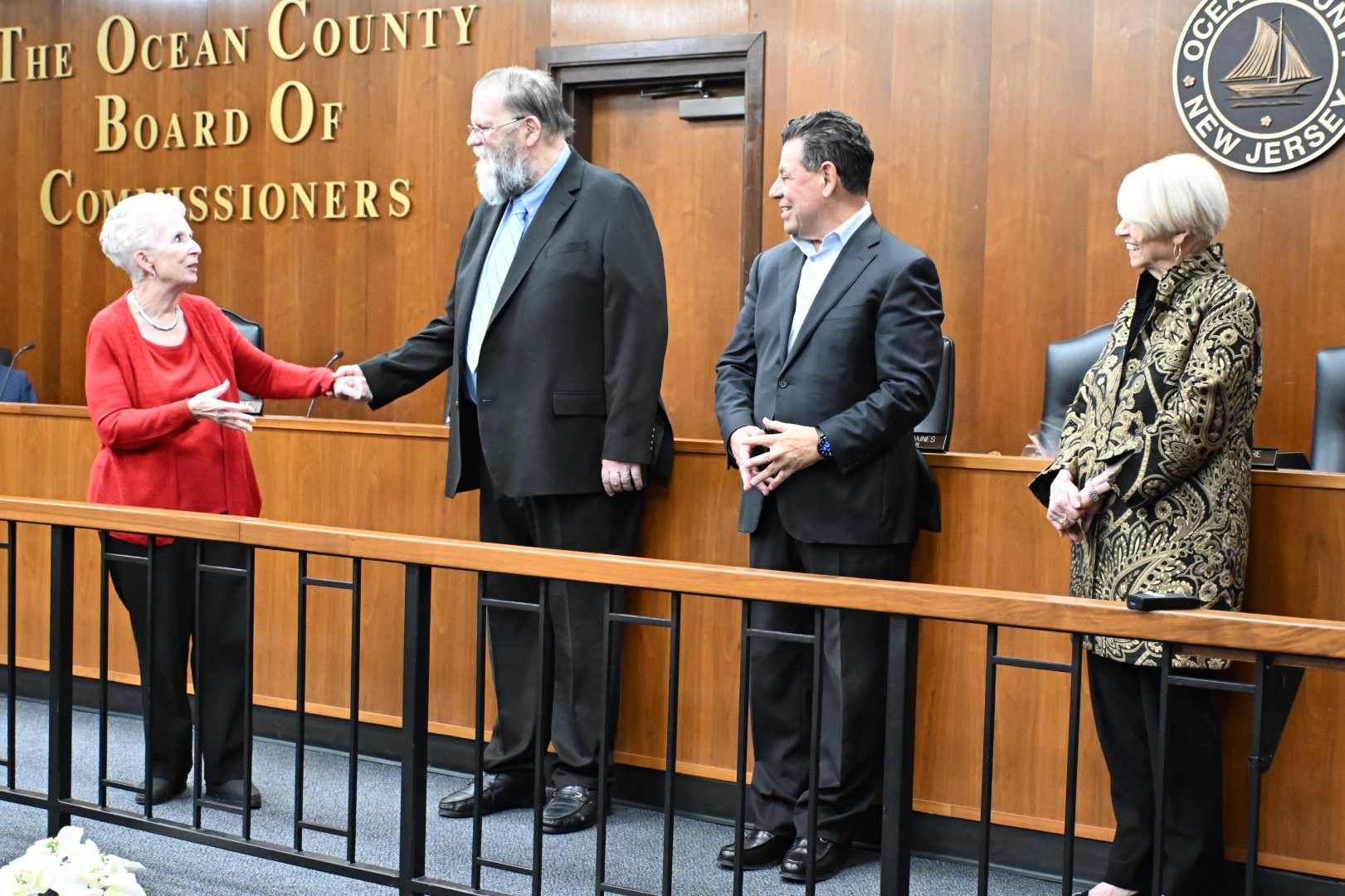 The ceremony featured heartfelt tributes from the 9th District State Sen. Carmen Amato and Assemblyman Gregory E. Myhre, Vetworks, Ocean County Prosecutor Bradley D. Billhimer, former Ocean County Commissioner Barbara Jo Crea, and incoming Commissioners Ray Gormley and Sam Ellenbogen. Commissioner Kelly and Haines’ retirement mark the end of an era and the beginning of a new chapter for Ocean County. We thank them for their extraordinary service and lasting impact on our community.
