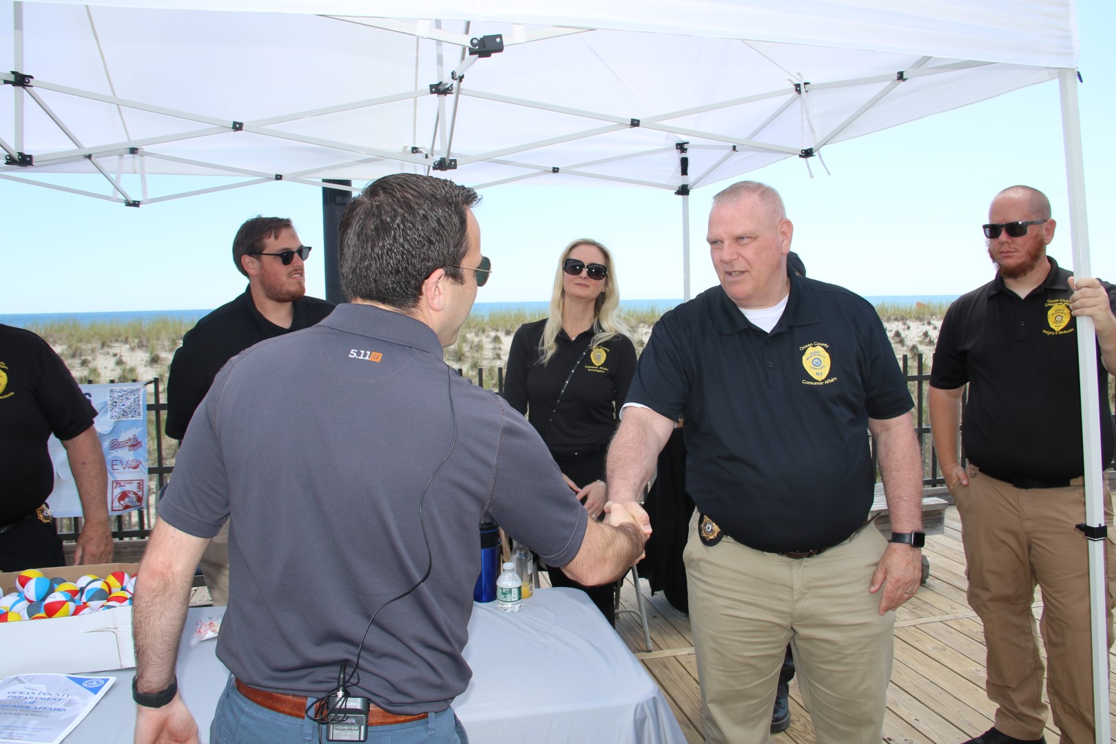 Ocean County officials joined with New Jersey Attorney General Matthew J. Platkin and the State Division of Consumer Affairs Acting Director Cari Fais on the boardwalk in Seaside Heights for the annual launch of the statewide “Safe Summer” boardwalk compliance program. The event highlights the Division’s annual enforcement initiative designed to promote a family-friendly environment at the Jersey Shore. The program includes summer-long inspections of the boardwalk games for fairness of play, and to ensure they have not been modified to the disadvantage of players. Those who joined Attorney General Platkin were the Deputy Director of the Ocean County Commissioners Gary Quinn, who serves as liaison to the Ocean County Consumer Affairs Department, Ocean County Prosecutor Bradley D. Billhimer with members of his staff, along with the Director of the Ocean County Consumer Affairs Ronald Heinzman with members of his staff and Seaside Heights Police Chief Thomas Boyd. Consumer Affairs investigators checked boardwalk merchants for compliance with pricing and refund policy disclosures required under law while Legalized Games of Chance Control Commission staff inspected arcade games for fairness of play. Random inspections of scales were also conducted by the State Office of Weights and Measures to ensure accuracy of weighing on the boardwalk. They also handed out educational materials to consumers to empower them as their own best advocates against fraud and deceit in the marketplace.