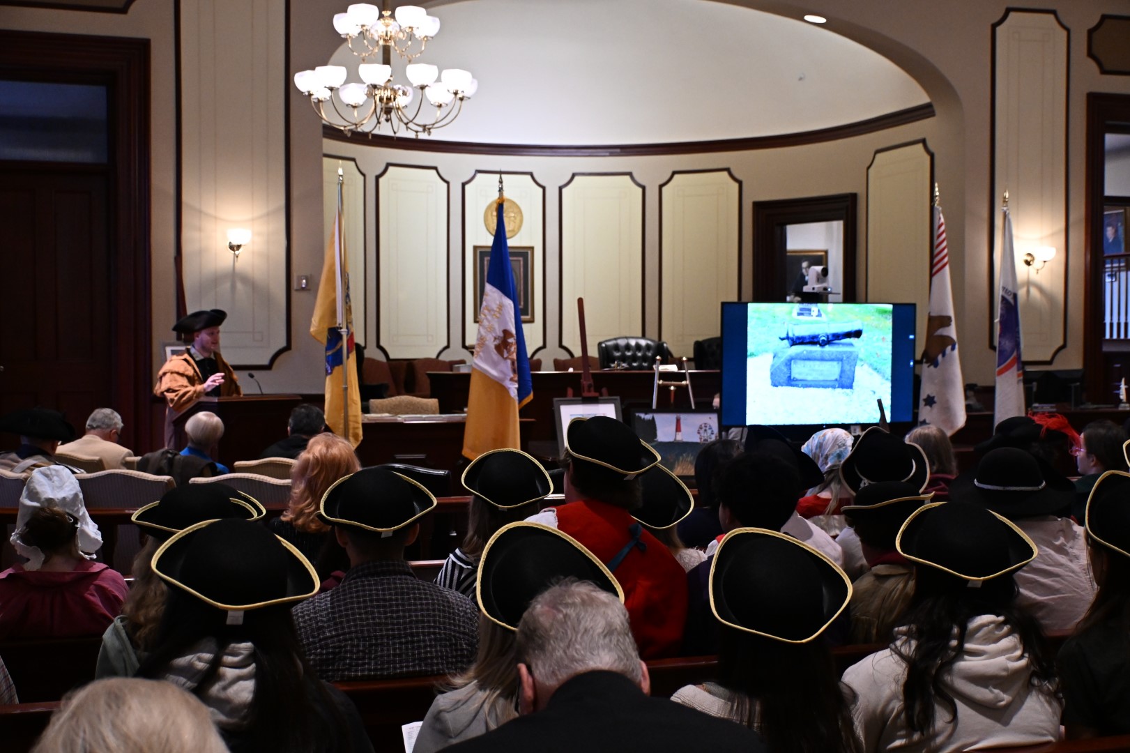 Held Nov. 19 in the Historic Court Room 1 of the Ocean County Courthouse, this year’s program highlighted Paul Revere’s Midnight Ride and the lantern signal from Boston’s Old North Church on April 18, 1775, which was an act that helped prepare the Minutemen for the Battles of Lexington and Concord, the first military engagements of the American Revolution.