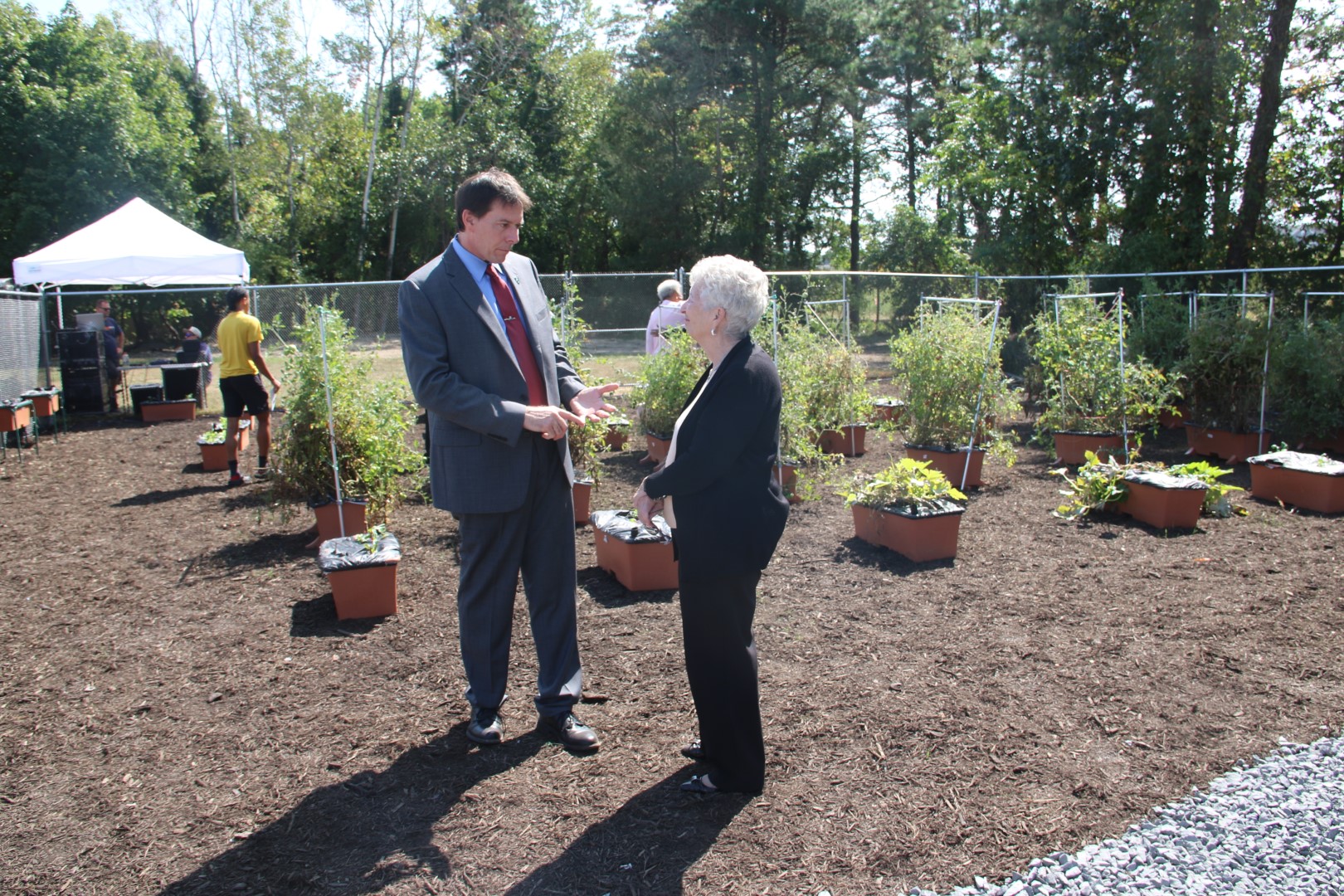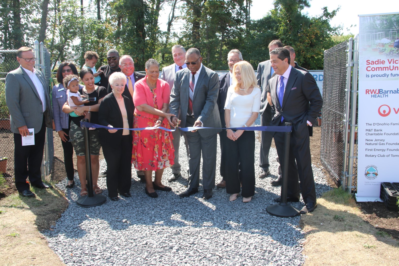 The grand opening of the Sadie Vickers CommUnity Garden was celebrated with a ribbon cutting ceremony on Sept. 12 at the site of the garden on First Avenue in South Toms River. Developed in collaboration with the Sadie Vickers Resource Center and Community Medical Center, RWJ Barnabas Health, the garden will help to combat hunger in underserved communities in Ocean County. The Director of the Ocean County Board of Commissioners Barbara Jo Crea, State Sen. Carmen Amato, State Assemblyman Brian Rumpf, both 9th District joined with Patrick Ahearn, Chief Executive Officer of Community Medical Center, Mark E. Manigan, President and Chief Executive Officer of RWJ Barnabas Health, Rev. David Graham, Chief Executive Officer of the Sadie Vickers Resource Center and the Rev. Barbara Miles, Community Chaplain Liaison and Community Medical Center Board Member and Hospital Trustee, in recognizing volunteers and the many helping hands that created the garden. The garden will offer access to healthy foods and nutrition and wellness education throughout the year in an area that lacks supermarkets or easily available produce and other nutritious foods.