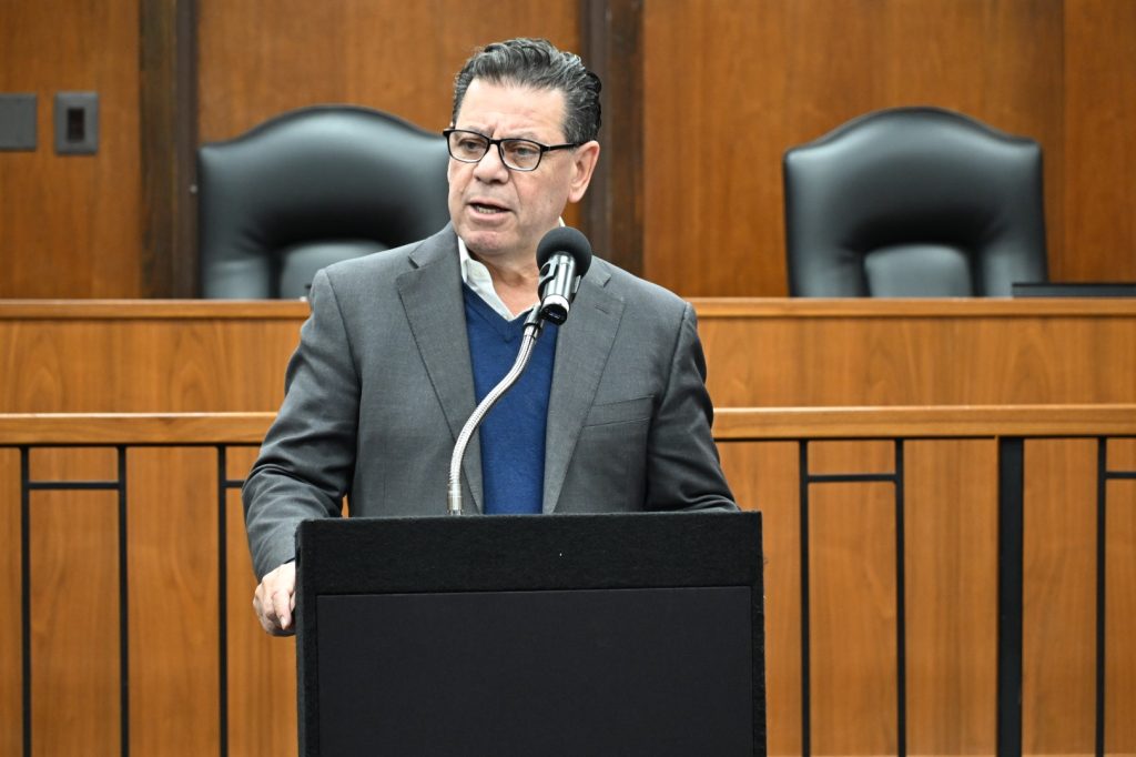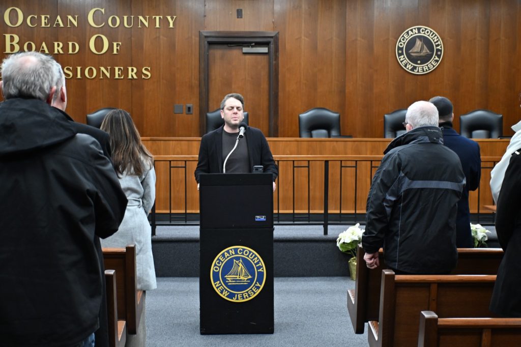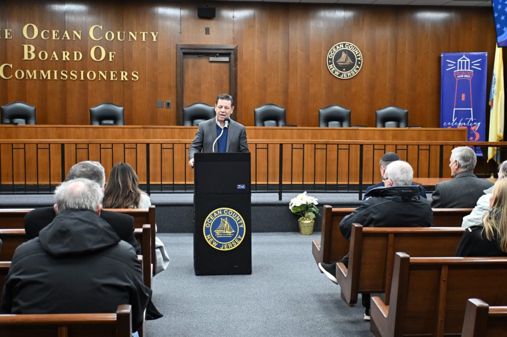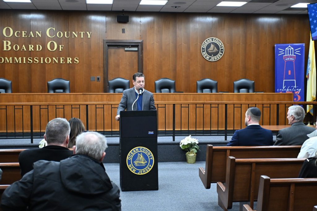 Sadeghi was joined by Commissioners Virginia E. Haines and Jennifier Bacchioine, Ocean County Prosecutor Bradley Billhimer, Sheriff Michael G. Mastronardy, Commissioner-Elect Sam Ellenbogen, and a host of Ocean County government staff members. Michael Waldner of the Toms River Jewish Community Council led the ceremony, and Rabbi Moshe Gourarie of Chabad of Toms River lit two candles for the second night of Hanukkah.