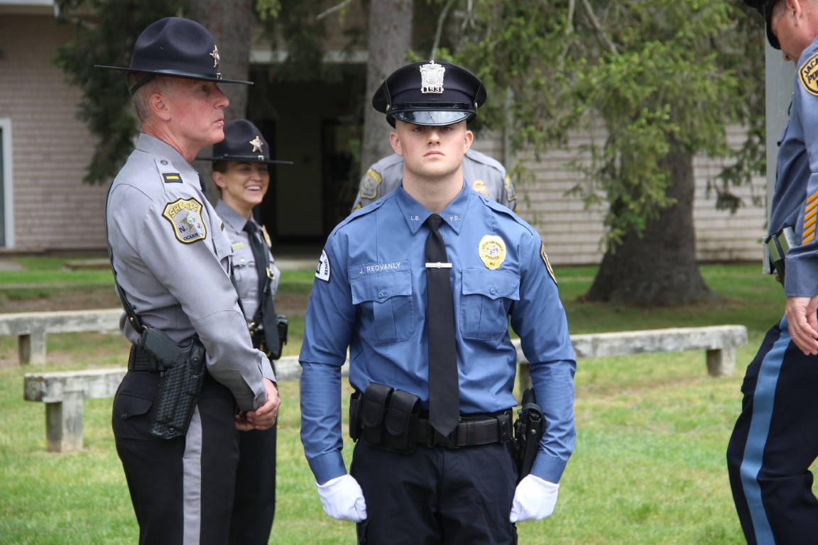 The graduates and their respective police departments are: Anthony M. Aldrich, Julian J. Coffing, Patrick A. Trushell, III, Anthony L. Tuminaro, all Berkeley Township Police Department; Adam J. Bakos, Umberto Verace, both Ship Bottom Police Department; Michael C. Baronowski, Joseph J. DeAngelo, Sergio N. DePinto, Corinne M. Heinert, Anthony M. McCall, Jack. R. McKee and Kenneth Wold, all Beach Haven Police Department; Noah M. Baxter, Ocean Gate Police Department; Armando Caballero-Sanchez and Elie C. Lavarin, Belmar Police Department; Joshua A. Capellan, Danny C. Cortes and John K. Redvanly, all Long Branch Police Department.