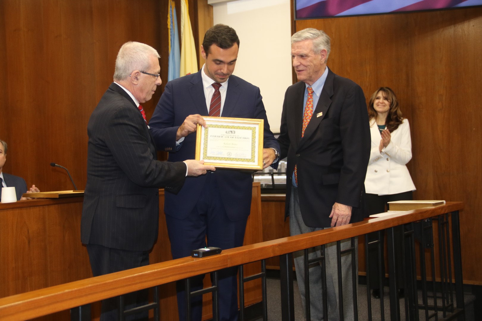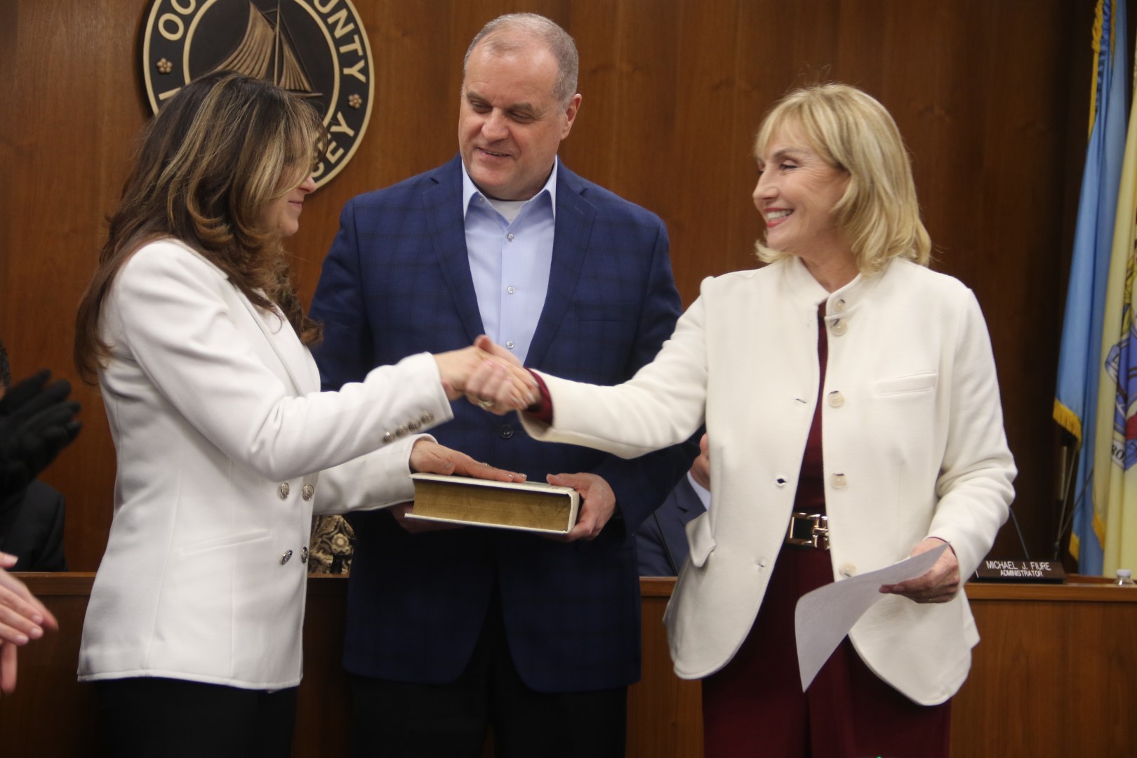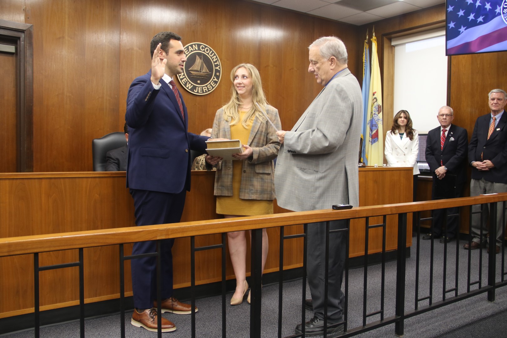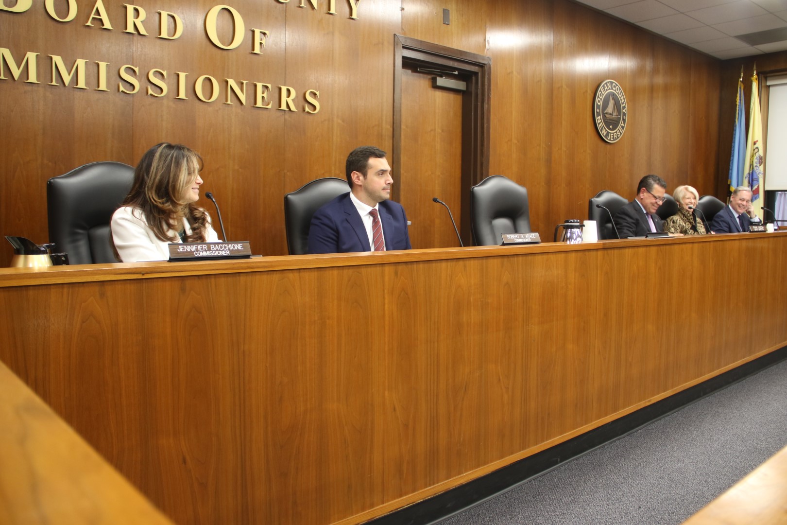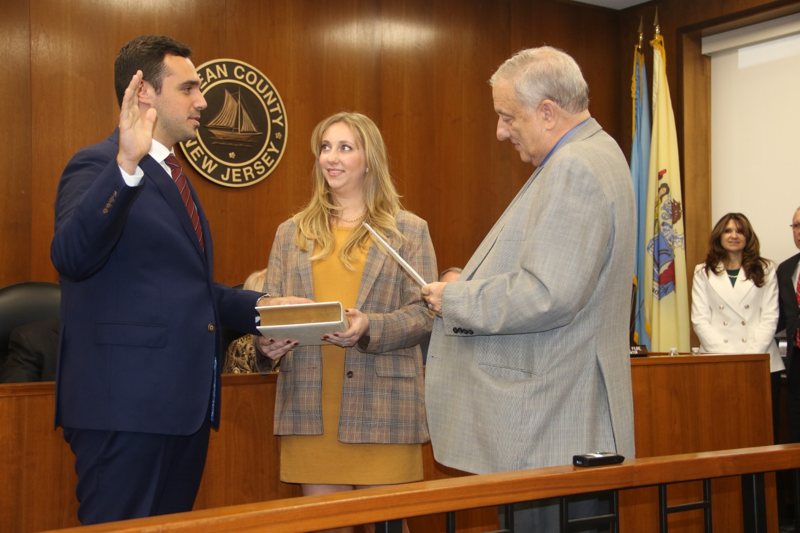 With family, friends, colleagues, staff, elected officials from the state and local levels in attendance, the Ocean County Board of Commissioners held its annual Organization Meeting for 2025 on Jan. 6 in the Ocean County Administration Building, Toms River. The Board welcomed new Commissioners Robert S. Arace and Jennifier Bacchione who were sworn into their first three-year terms on the Board. Also during the meeting, Ocean County Commissioner John P. Kelly, who is serving his 33rd year on the Board was appointed Board Director for 2025 and Ocean County Commissioner Frank Sadeghi, serving his second year of his first term, was named Board Deputy Director.