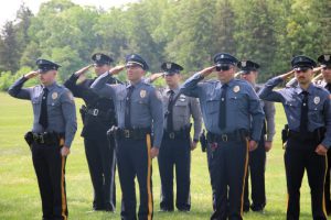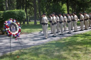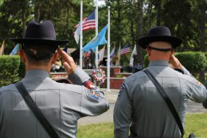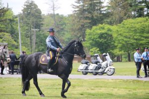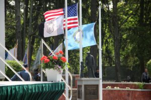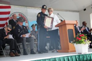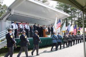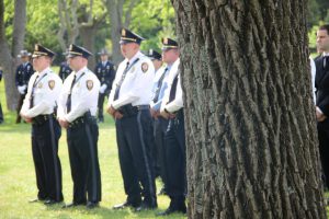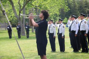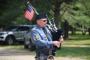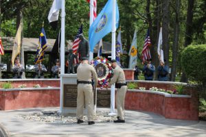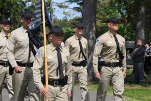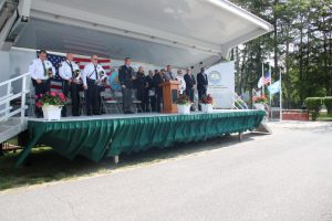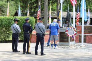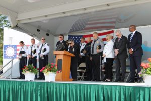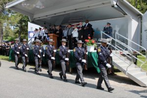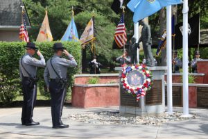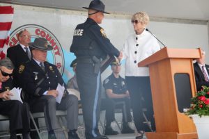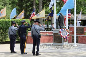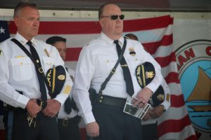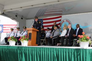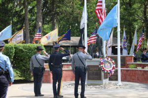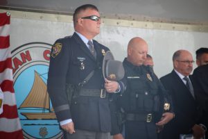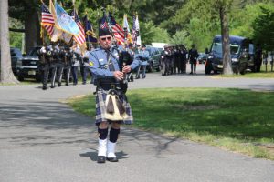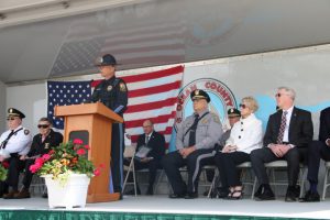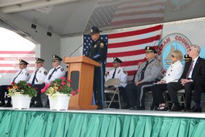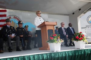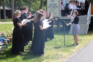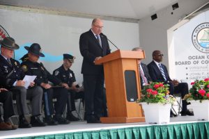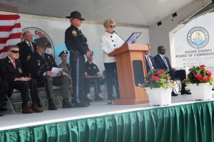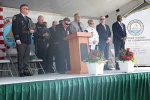 Members of law enforcement, along with the Ocean County Board of Commissioners joined with the family members and loved ones of law enforcement officers from the County that made the ultimate sacrifice while serving the citizens of the County during the 32nd Annual Ocean County Law Enforcement Memorial Day Observance at the Ocean County Police Memorial in Ocean County Park, Lakewood. With precise formation, police motorcycle squads, bag pipes, police honor guards and recruits from the Ocean County Police Academy opened the ceremony recognizing the 20 members of Ocean County’s law enforcement community that grace the Police Memorial during the May 19 ceremony. The names of Sgt. Matthew Horton of the Ocean County Sheriff’s Office, and Captain Joseph Goertz of the Lakewood Police Department were added to the memorial this year. Their names were also entered onto the National Law Enforcement Memorial. The keynote speaker at the day’s ceremony was Barnegat Township Police Chief Keith Germain, President, Ocean County Chiefs of Police Association. Presenting a proclamation recognizing May 19 as Peace Officers Memorial Day on behalf of the Ocean County Board of Commissioners was Commissioner Virginia E. Haines. Music for the ceremony was provided by the Ocean County Vocational Technical Schools Performing Arts Academy Vocal Ensemble and the Point Pleasant High School Panther Concert Band.