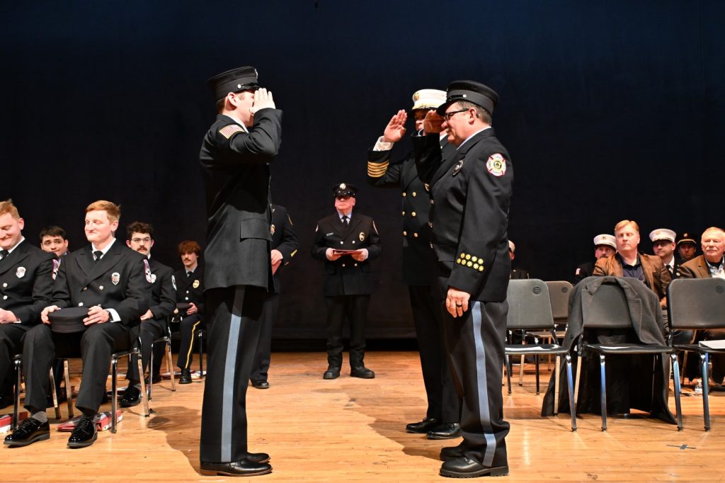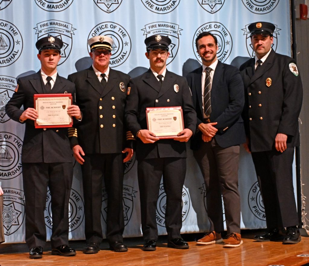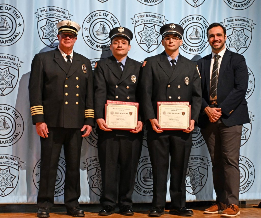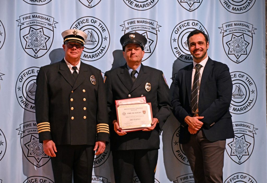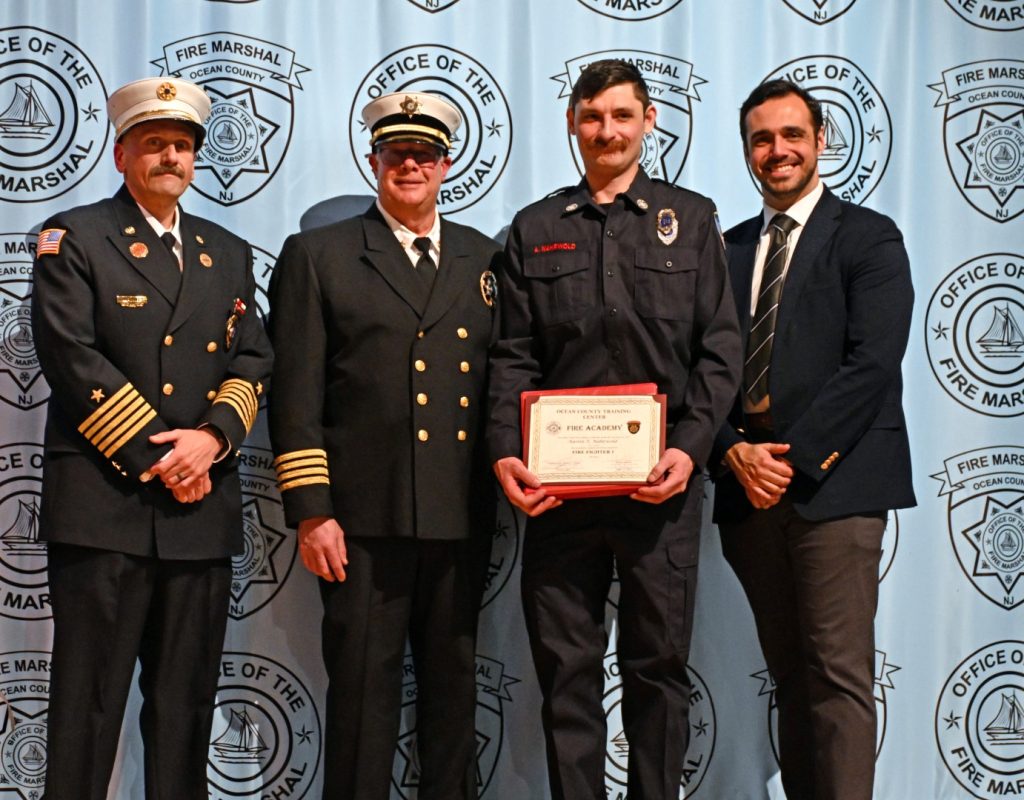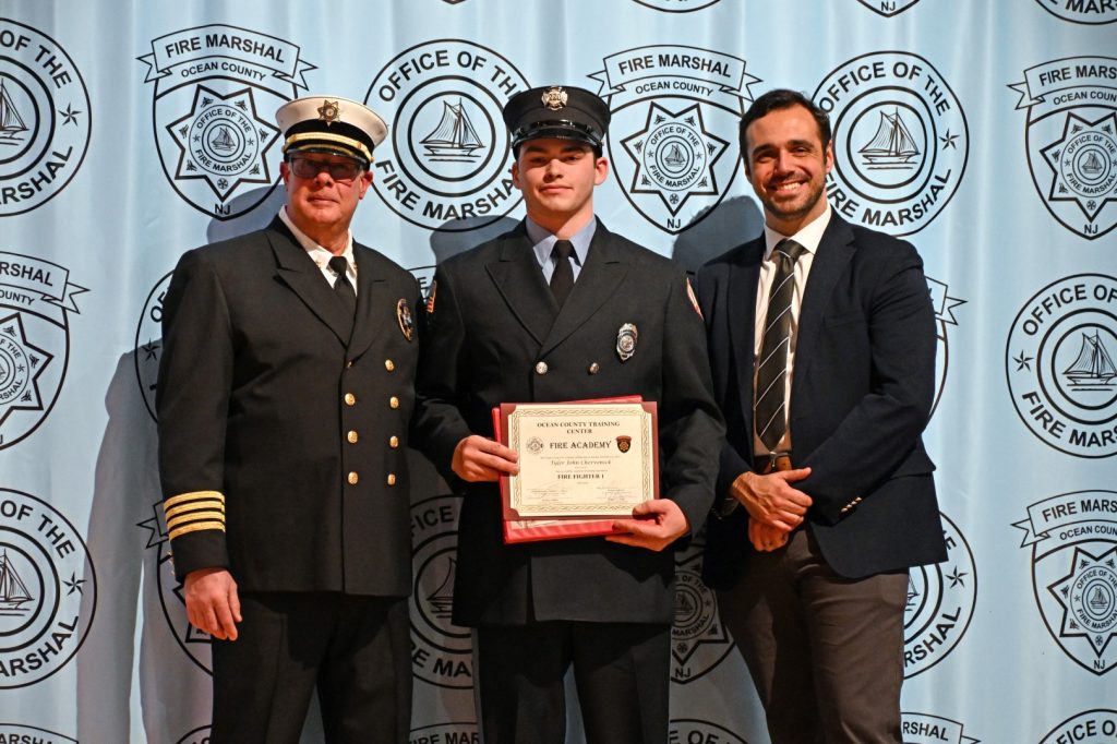 After completing the rigorous training required to serve their communities, 25 recruits received their respective volunteer fire company badge during graduation ceremonies on February 9 at Lacey High School. Surrounded by family, friends, instructors, and fellow first responders, the graduates marked the beginning of their service to communities across Ocean County. Manchester Mayor Joseph Hankins, also a past Chief of the Manchester Fire Department, delivered the keynote address, reflecting on the responsibility and honor that comes with the badge. Ocean County Commissioner Robert S. Arace congratulated the new firefighters on behalf of the Board of Commissioners. “Becoming a firefighter is not just about mastering skills or completing training, it is about earning the trust of your community,” said Arace. “That trust is earned, and tonight you’ve earned it and Ocean County is proud of you.”