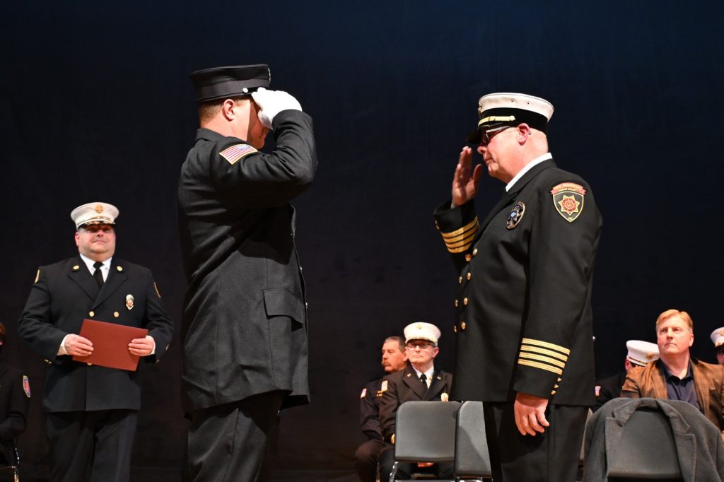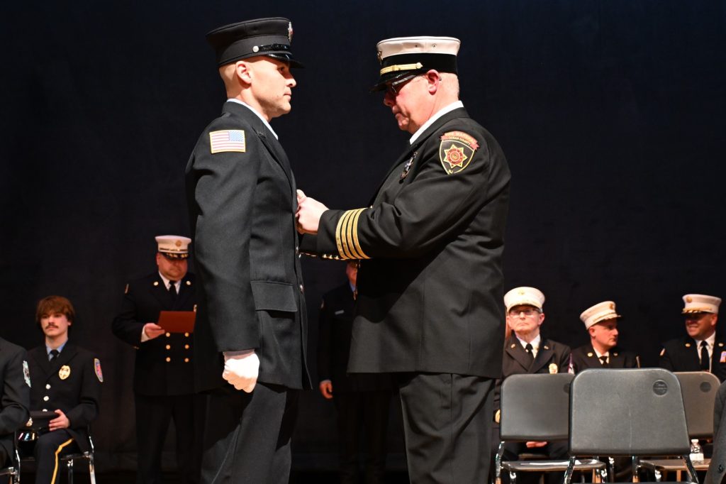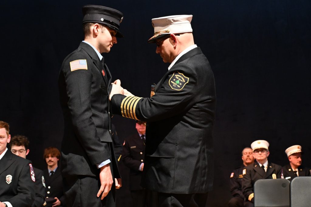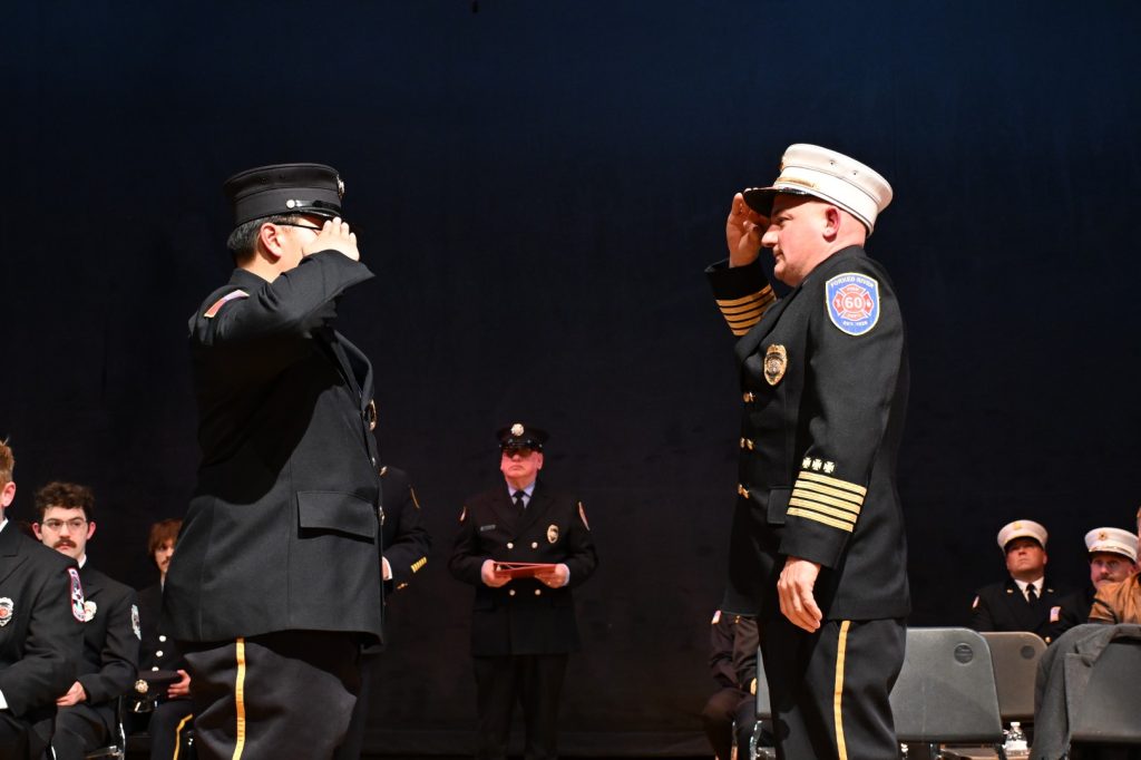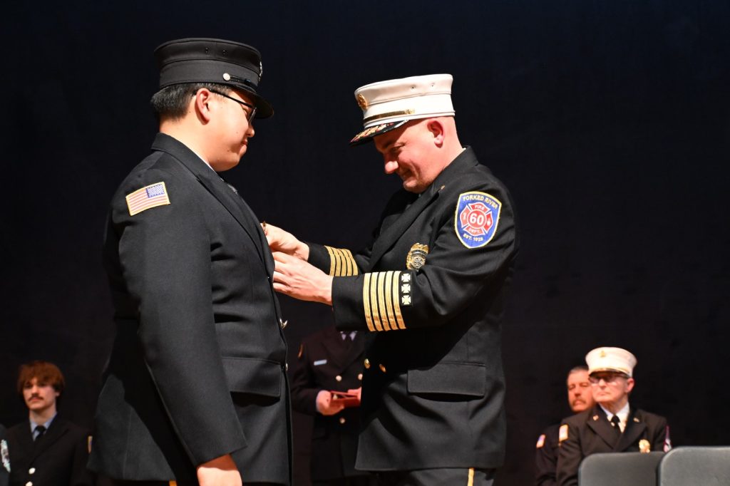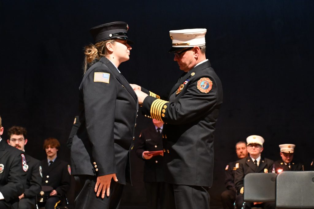 After completing the rigorous training required to serve their communities, 25 recruits received their respective volunteer fire company badge during graduation ceremonies on February 9 at Lacey High School. Surrounded by family, friends, instructors, and fellow first responders, the graduates marked the beginning of their service to communities across Ocean County. Manchester Mayor Joseph Hankins, also a past Chief of the Manchester Fire Department, delivered the keynote address, reflecting on the responsibility and honor that comes with the badge. Ocean County Commissioner Robert S. Arace congratulated the new firefighters on behalf of the Board of Commissioners. “Becoming a firefighter is not just about mastering skills or completing training, it is about earning the trust of your community,” said Arace. “That trust is earned, and tonight you’ve earned it and Ocean County is proud of you.”