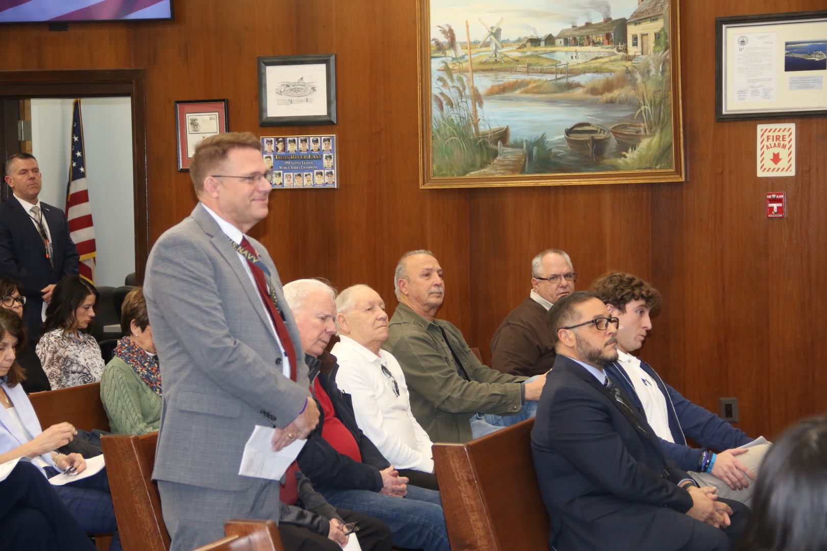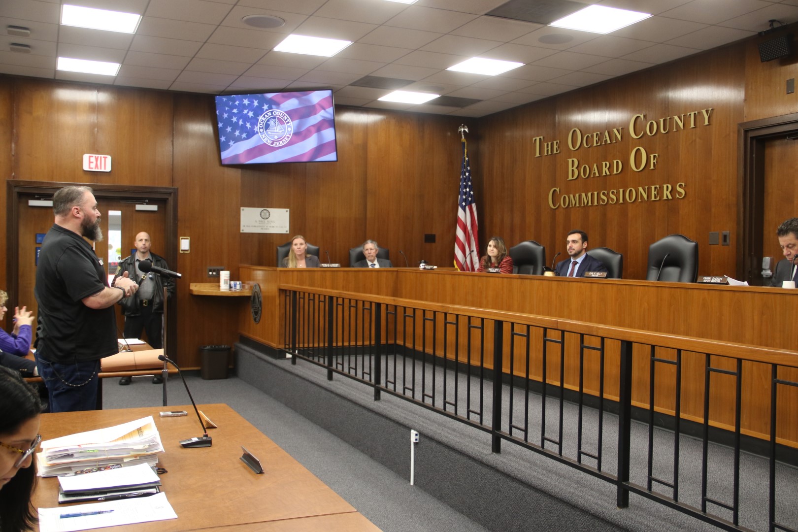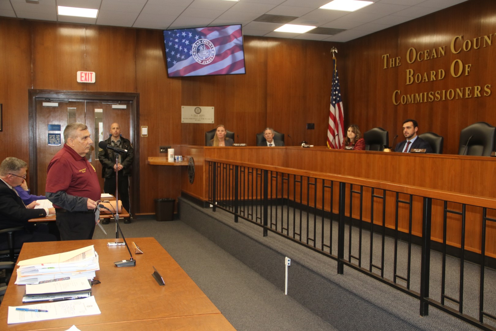 The services of the Ocean County Veterans Service Bureau were highlighted during the Feb. 19 Ocean County Board of Commissioners meeting. Veterans representing each branch of the military attended the meeting and noted how the work of the bureau has helped them following their service to our country. More than 30,000 veterans call Ocean County home, the largest veteran population in the state. The main office of the Ocean County Veterans Service Bureau is located on the first floor of the Ocean County One-Stop Center, 1027 Hooper Ave., Toms River, and provides numerous services including initiating and filing veteran’s claims with both the state and federal government, filing for death benefits, filing for burial benefits and filing for other entitlements. The Veterans Service Bureau, headed up by Director George R. P. Zimmerman Jr. also facilitates transportation to V.A. medical centers, lends wheelchairs and walkers to disabled veterans and serves as a referral source for mental health, medical and social service agencies. Services provided by the Bureau can also be accessed at outreach sites at the Southern Ocean County Southern Services Center in Manahawkin and at 82 Lacey Road in Whiting. Ocean County Commissioner Robert S. Arace serves as the Board liaison to the Bureau which is staffed by well-trained and knowledgeable veteran services officers. To contact the Bureau call 732-929-2096. The Ocean County Board of Commissioners extends its appreciation to the men and women that have served and continue to serve our Country.