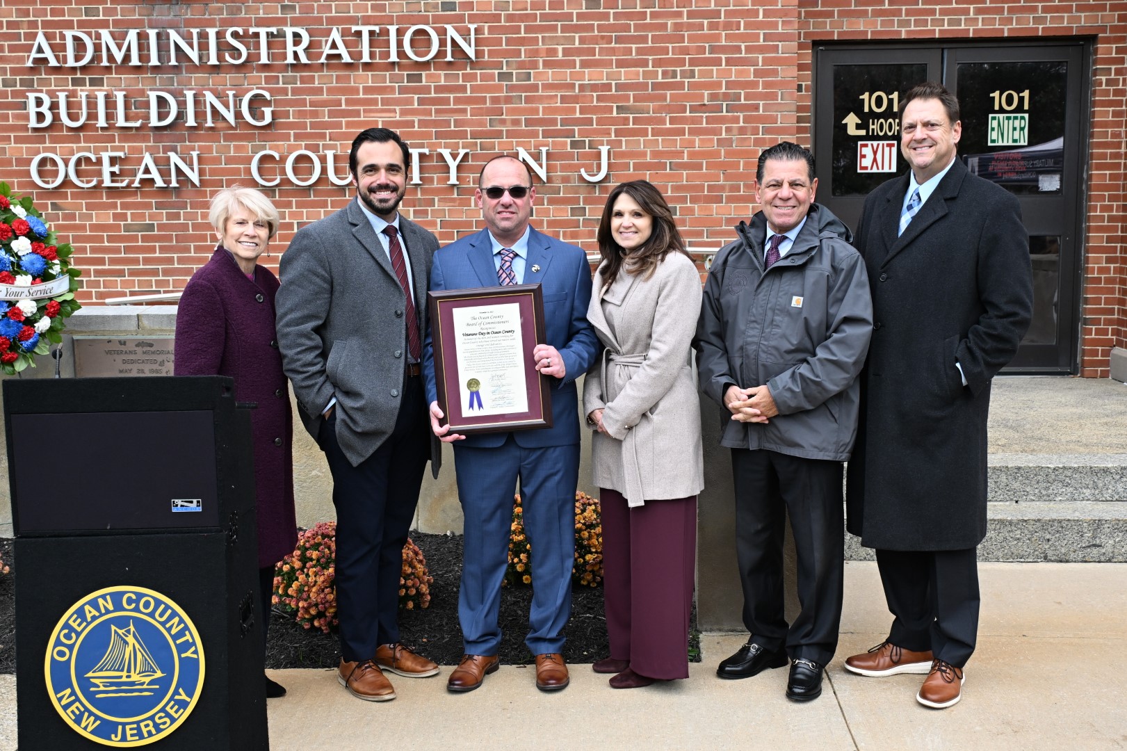 The Ocean County Board of Commissioners honored the many veterans who serve within Ocean County Government during a morning ceremony on the south lawn of the Ocean County Administration Building on Nov. 12. Led by Commissioner Robert S. Arace, liaison to the Ocean County Veterans Service Bureau, the event recognized employees for their military service and continued dedication to the public. “Today is about our veterans and about recognizing the incredible impact you’ve had on our country, and right here in our community,” said Arace. “That service doesn’t end when you come home; it continues in the leadership, integrity, and pride you bring to Ocean County every day.”