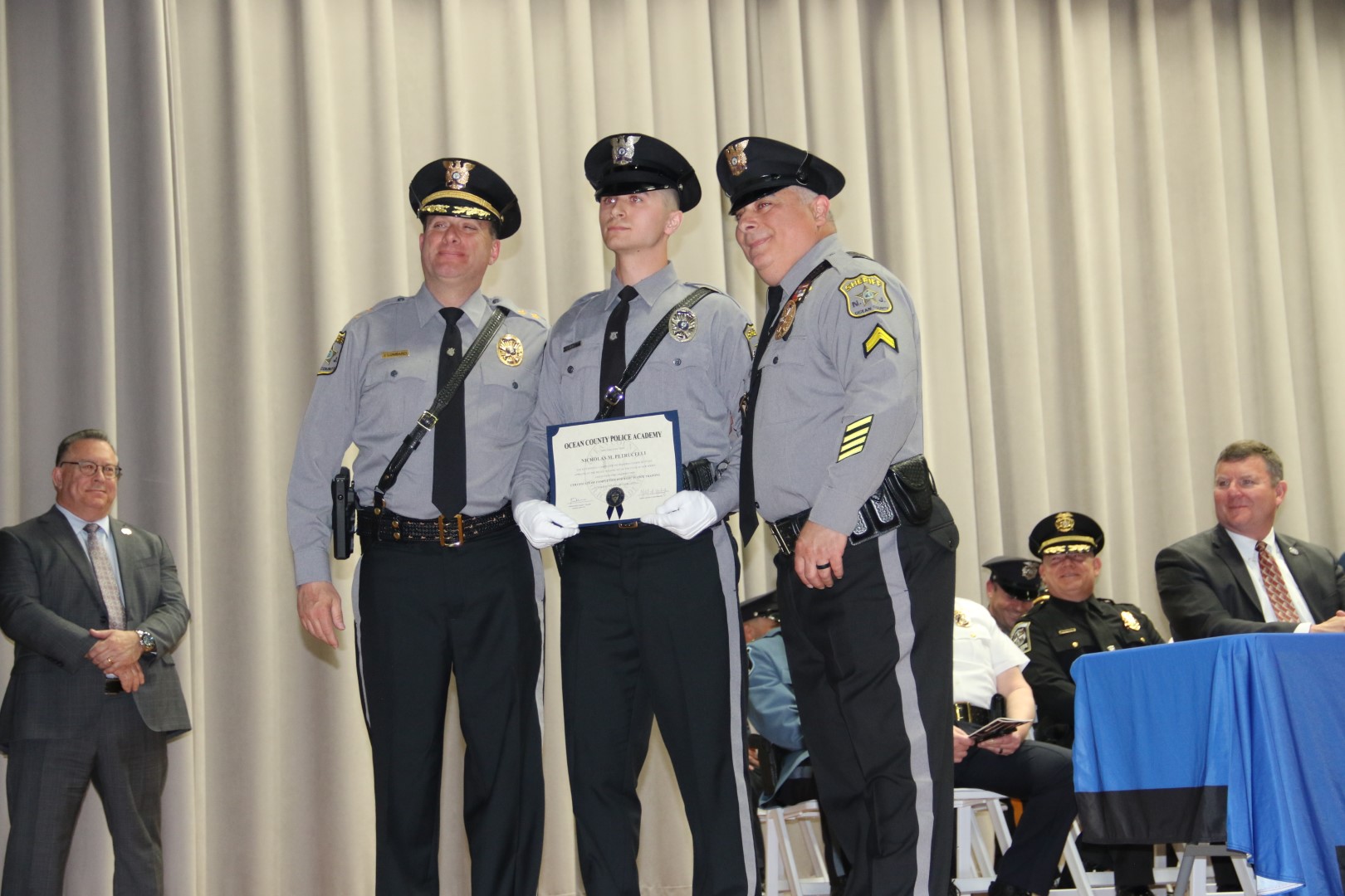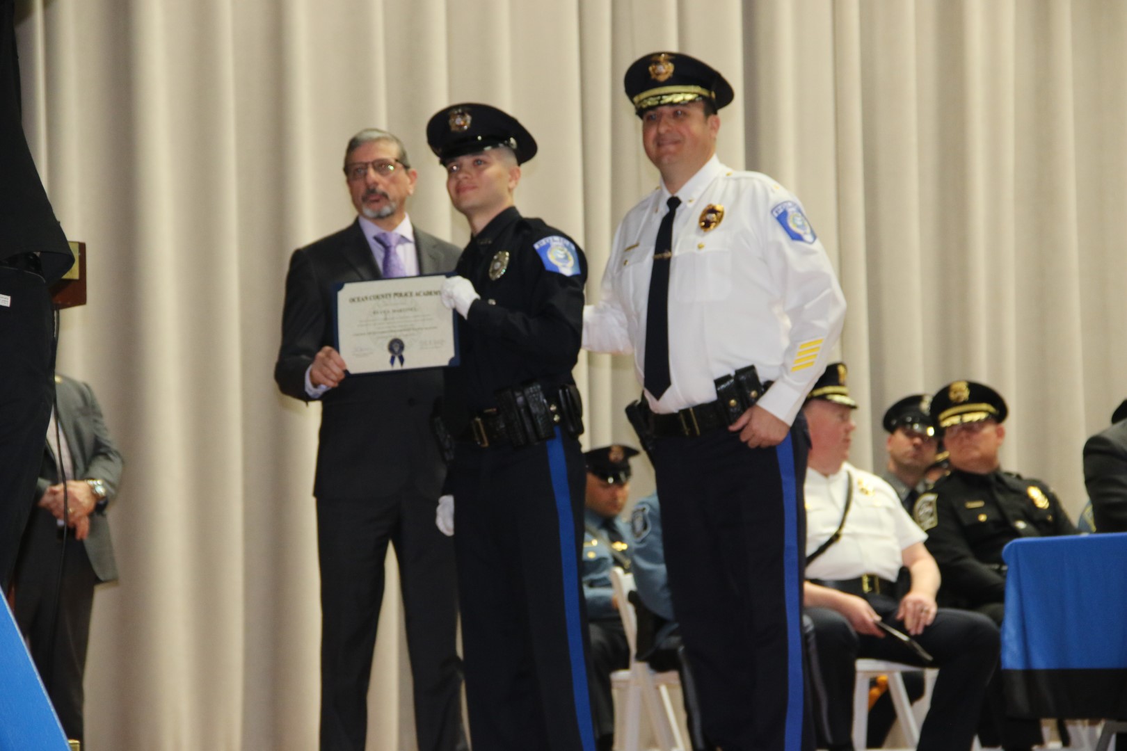 “This graduation marks a new beginning as our police recruits make their way into our communities as peace officers,” said Ocean County Commissioner Virginia E. Haines who spoke on behalf of the Board of Commissioners. “As an officer you assume many roles in the community including a mentor, counselor, friend, and protector.