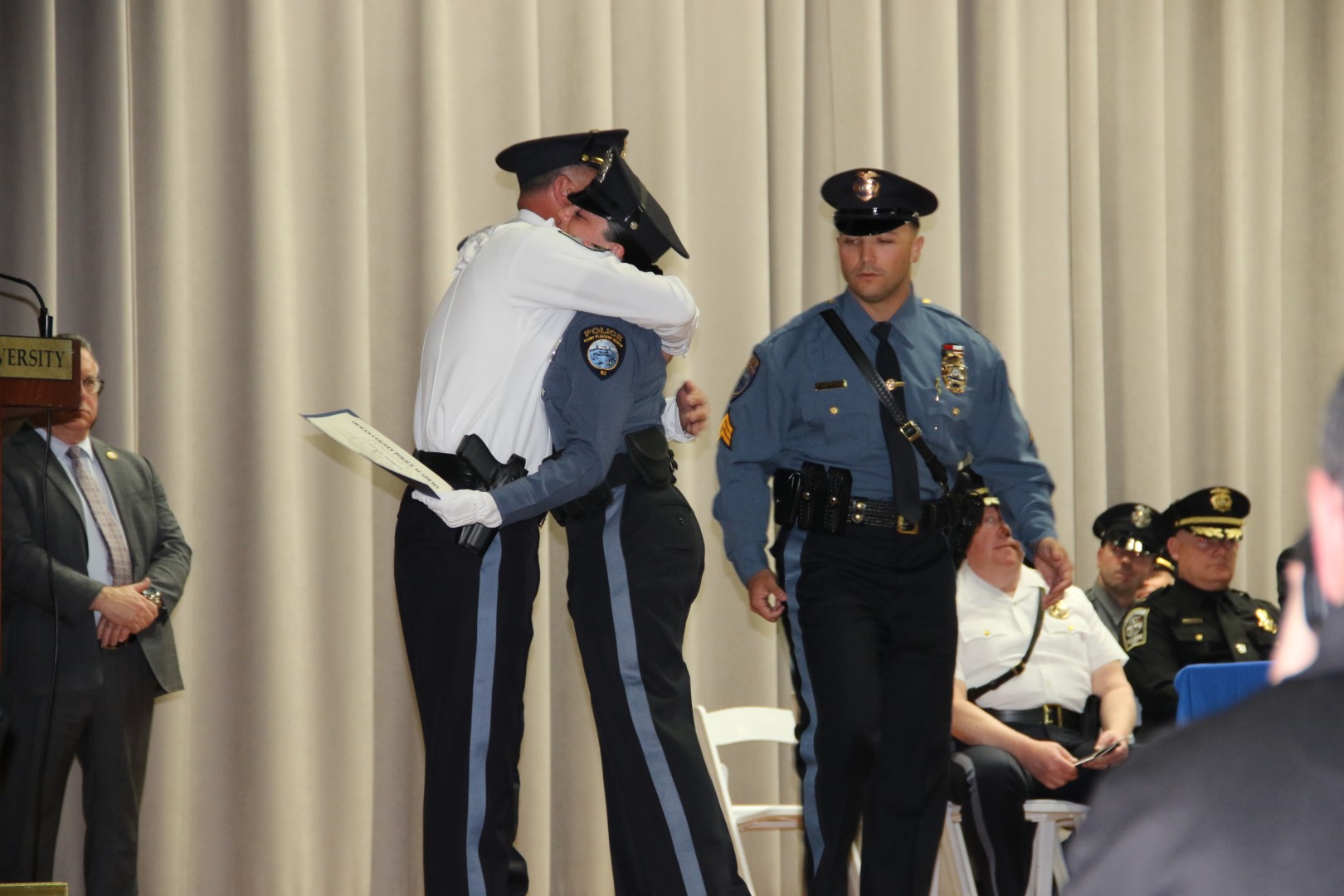 “Today, as you accept the badge of peace officer, you enter into a noble vocation but one fraught with danger and uncertainty,” she told the new officers. “You’ll face many challenges, but remember that these come with unique rewards – the opportunity to serve, protect, and make a difference.”