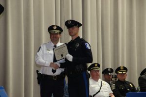 Those recruits receiving awards during the ceremony were: Jared J. Schworn, Long Beach Township Police Department, James J. Tracey Leadership Award; Robert J. Gunnell, III, Long Beach Township Police Department, Robert D. Melson Police Training Commission Merit Award; Bryan T. Laureigh, Ship Bottom Police Department, High Academic Award; Keoni M. Lieter, Long Beach Township Police Department, High Overall Award; Ryan Dugan, Ship Bottom Police Department, High Physical Fitness Award, and Nicholas P. Petrow, Point Pleasant Beach Police Department,High Marksmanship Award.