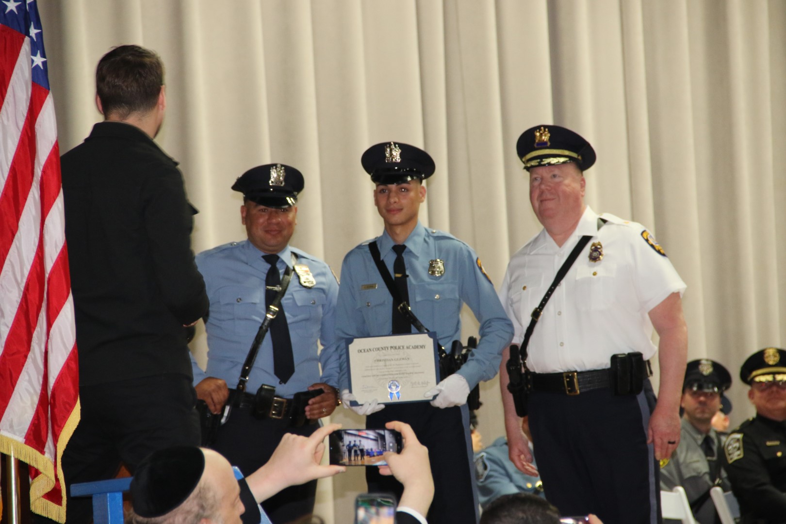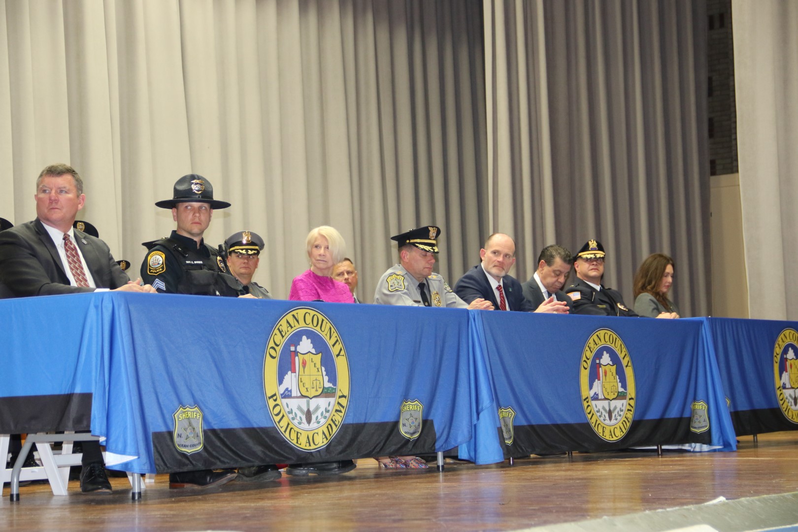 Haines was joined on the dais by Deputy Director of the Ocean County Board of Commissioners Frank Sadeghi, Ocean County Undersheriff’s Jon G. Lombardi and Thomas Dellane, Police Academy Director, Ocean County First Assistant Prosecutor Michael T. Nolan Jr., numerous police chiefs and law enforcement officials.