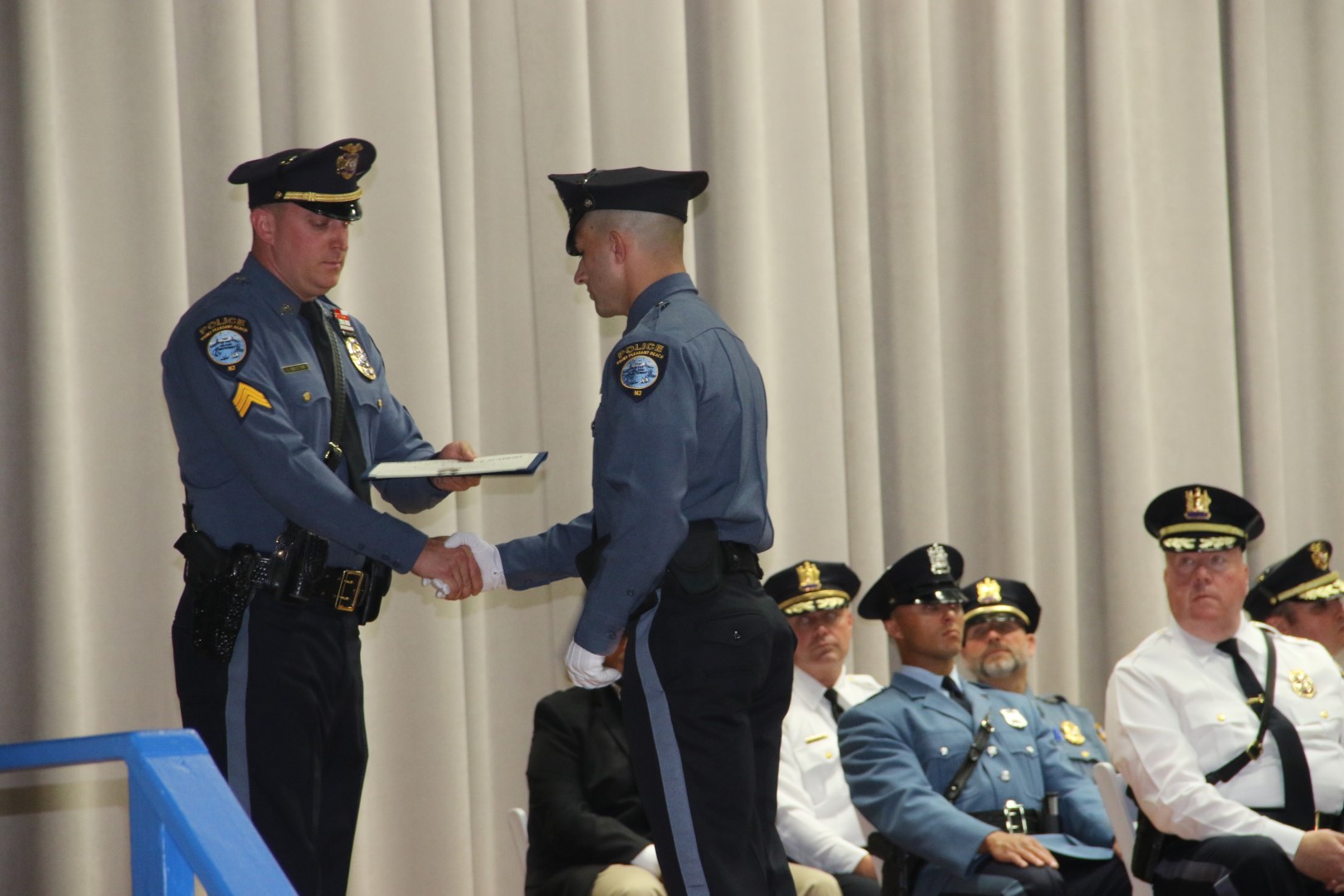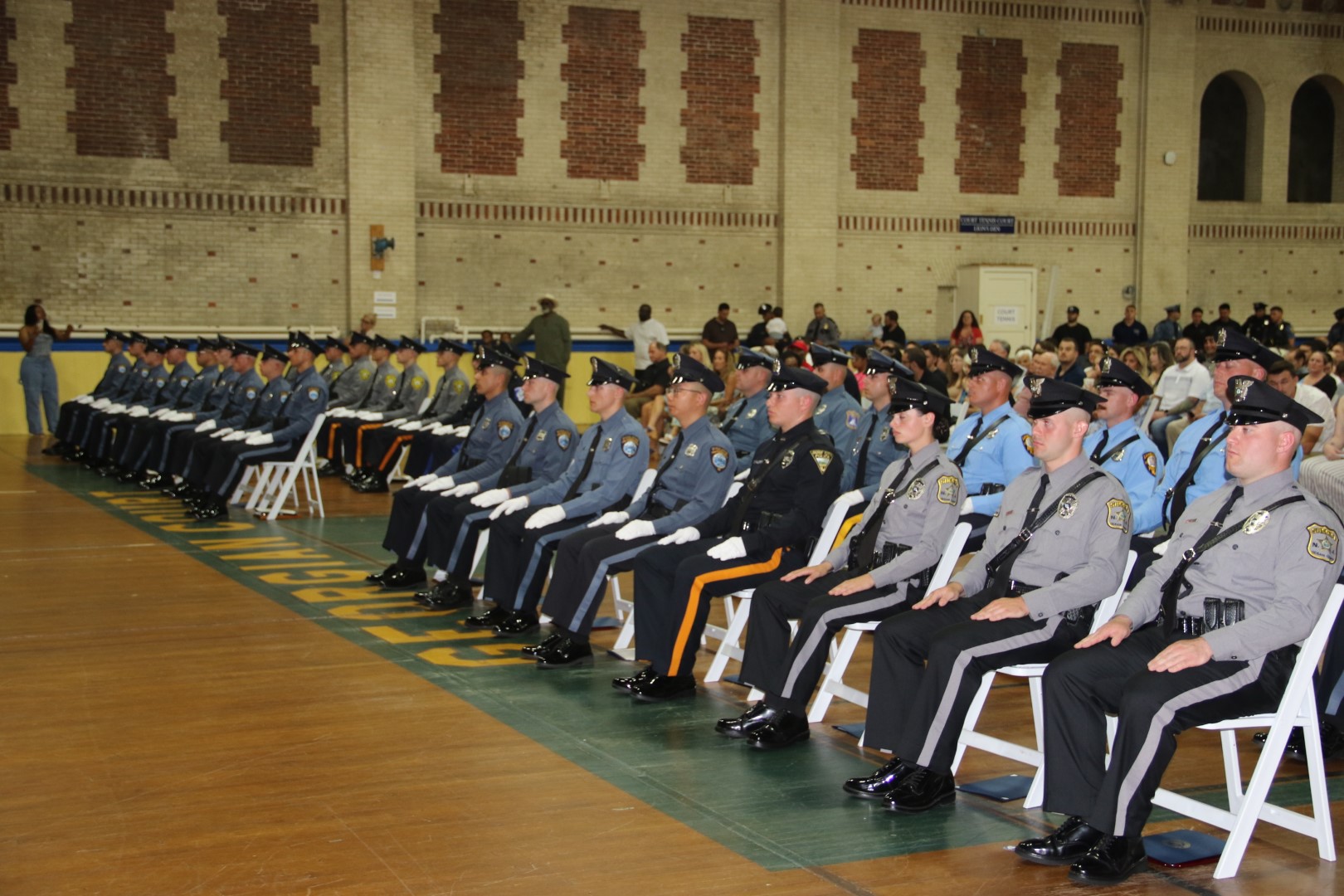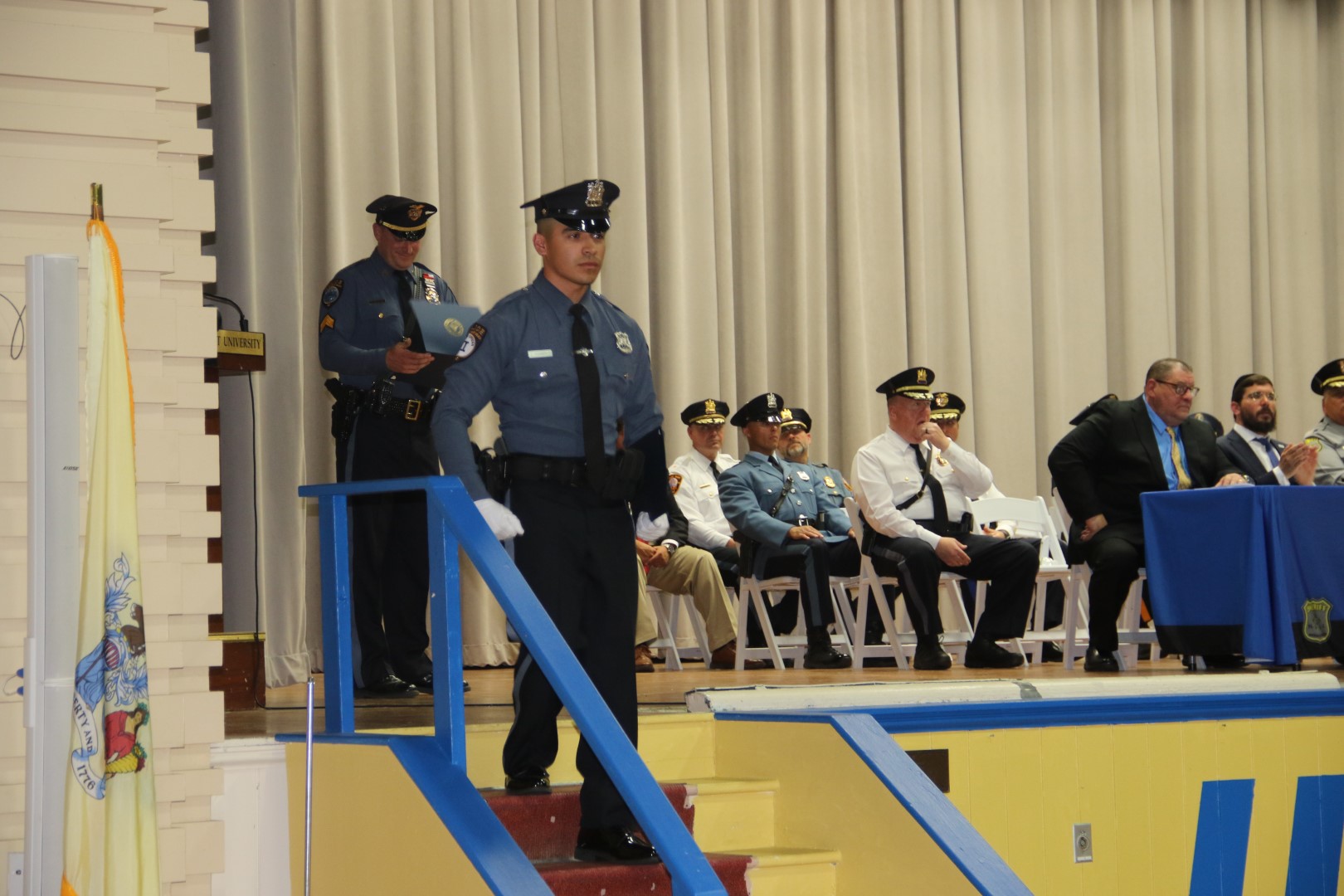 Ocean County Police Academy Basic Police Recruit Class No. 117 was recognized on June 7 during a graduation ceremony at Georgian Court University, Lakewood, following the successful completion of five months of intensive training at the academy which is led by Ocean County Sheriff Michael G. Mastronardy. The recruits were joined by family members and loved ones, their academy instructors and a host of law enforcement leaders and county Commissioners during the ceremony. “With the help of your very capable leaders and training instructors you achieved what for many is just a passing thought,” said Deputy Director of the Ocean County Board of Commissioners Gary Quinn, in addressing the class. “You have successfully completed your initial training and today we celebrate your accomplishments.” Three of the recruits – Jessica A. Campana, Jason P. Glass, Alexander C. Maj – will be joining the Ocean County Sheriff’s Department. Police Academy Instructor Surf City Police Department Sgt. Sarah Roe also was recognized for her dedication to the training at the Academy. Class award winners were: Alexander Maj, Ocean County Sheriff’s Department, the James J. Tracey Leadership Award; John A. Chelston, Joseph E. Ramirez, Maddox A. Samaritano, all Point Pleasant Beach Police Department, PTC Merit Award Winners; Kenneth J. Fortino, Point Pleasant Beach Police Department, High Overall Award; Nicholas C. Florio, Lakewood Police Department, High Academic Award and Class Valedictorian; Jack P. Coppolino, Seaside Heights Police Department, High Physical Fitness Award; Corey R. Maliff, Lakewood Police Department, High Marksmanship Award; and John A. Chelston, Anthony S. Concepcion, Sean M. Ferguson, Corey R. Maliff, Evan G. Ross, Daniel Wu, all Perfect Score Award. The following is a list of the graduating recruits and their respective police departments: Ryan J. Anderson, Joseph A. Stokes, both Asbury Park Police Department; Cory G. Azambuja, Anthony C. Ceras, John A. Chelston, Anthony S. Concepcion, Jack P. Coppolino, Brayden D. Curry, Dean G. DeFalco, John J. Forbey, Kenneth J. Fortino, Mark C. Ladzinski Jr., Joseph E. Ramirez, Maddox A. Samaritano and Daniel Wu, all Point Pleasant Beach Police Department; Jessica A. Campana, Jason P. Glass, and Alexander C. Maj, all Ocean County Sheriff’s Department; Robert K. Christian, Dylan A. DaCunha, Eddie De La Fuente, Sean M. Ferguson, Matthew Gatto and Evan D. Gisinger, all Seaside Park Police Department; Nicholas C. Florio, Corey R. Maliff and Nicholas S. Meyer, all Lakewood Police Department; Michael L. Madera and Donald D. Woit, Lavallette Police Department; Tyler J. Powasnick, Evan G. Ross and Nicholas S. Zbikowski, all Seaside Heights Police Department, and Christopher J. Waldron, Surf City Police Department.