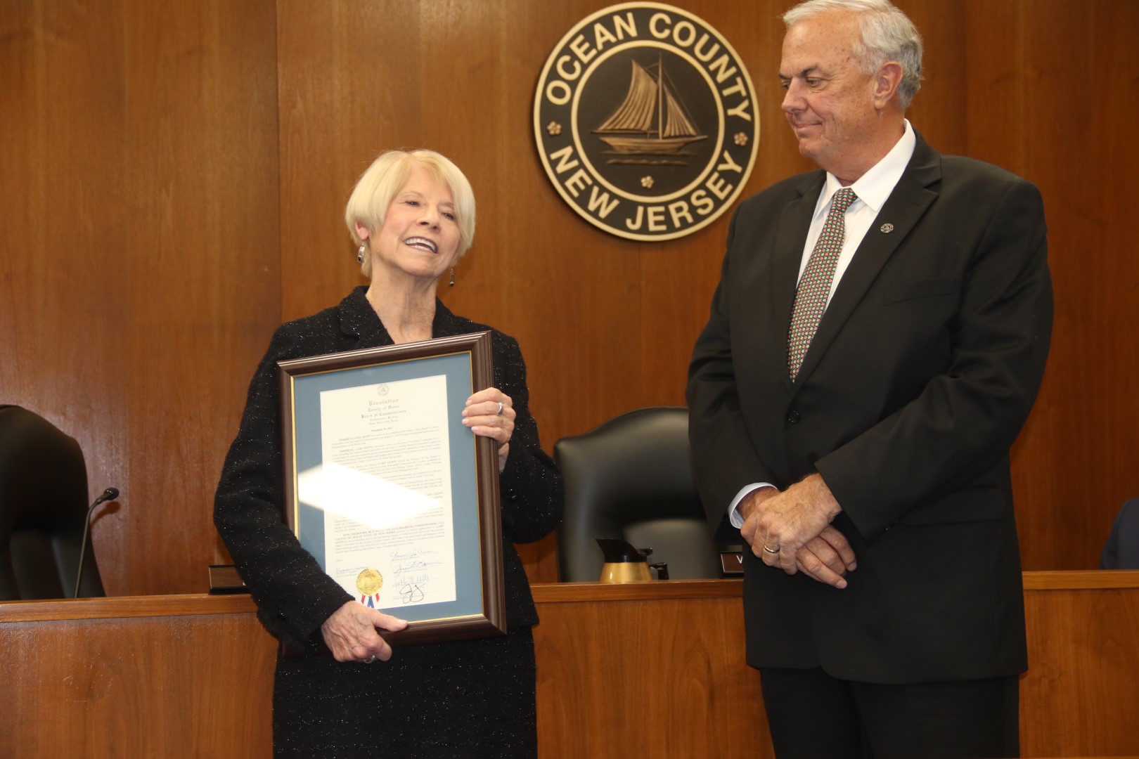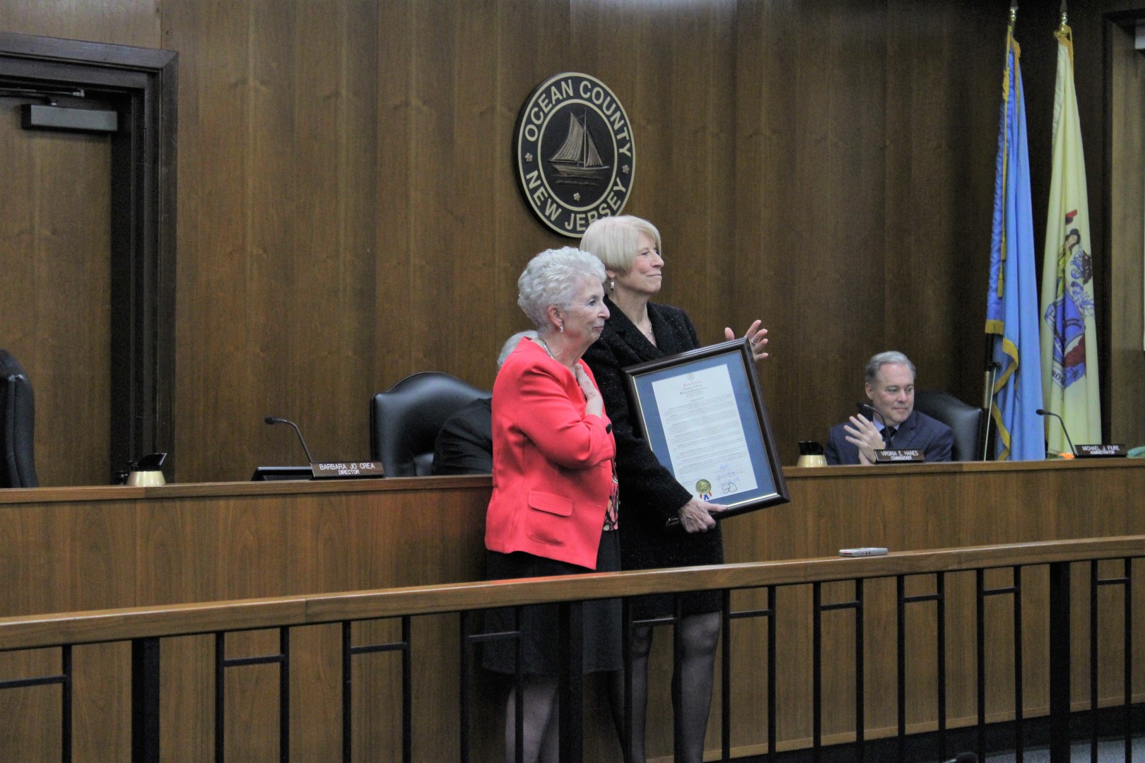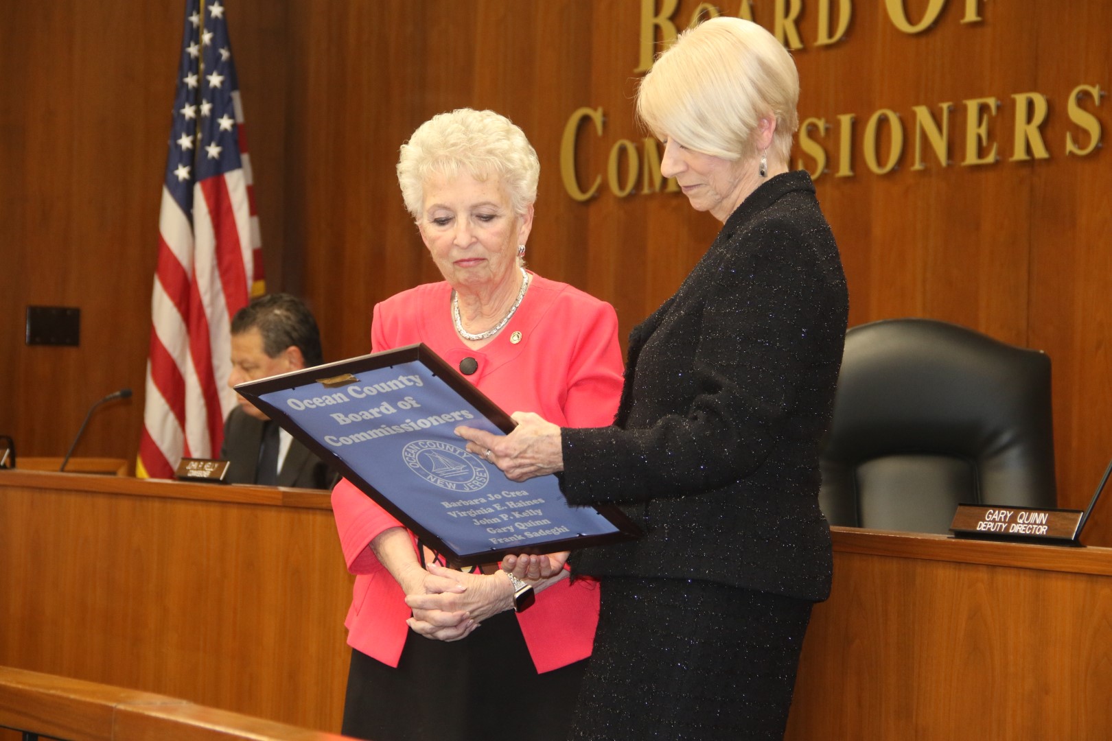 The Ocean County Board of Commissioners extends its appreciation to Director of the Board of Commissioners Barbara Jo Crea and Deputy Director of the Board of Commissioners Gary Quinn for their unwavering public service to the citizens of Ocean County. Crea served on the Board for a one three year term and Quinn served on the Board for two terms. Both are leaving an indelible mark on Ocean County government having implemented new key programs and improved upon existing services, all benefitting the quality of life for Ocean County residents. They are wished good health and happiness as they embark on new journeys.