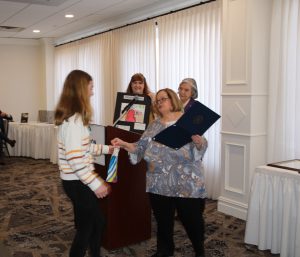 Also recognized during the event were the Women’s History Month Art Contest winners. The contest theme was Moving Forward Together! Women Educating and Inspiring Generations. The winning entries and their categories were: Best Fine Art – Grade 6 – Alexandra Wisniewski -Toms River Intermediate East; Best Digital Art – Grade 6 – Daniel Andreev – Lavallette Elementary School; Best Overall – Grade 6 – Melania Pernigotti – Veterans Memorial Middle School; Best Fine Art – Grade 7 – Heyli Lujan – Lakewood Middle School; Best Overall – Grade 7 – June Kunze – Manchester Township Middle School; Best Fine Art – Grade 8 – Nina Bohichik – Carl W. Goetz Middle School, and Best Overall – Grade 8 – Lilianna Ferlise – Lavallette Elementary School.